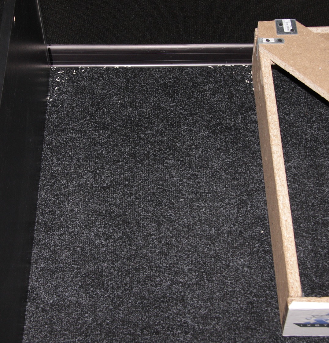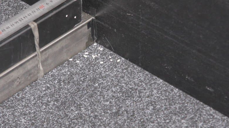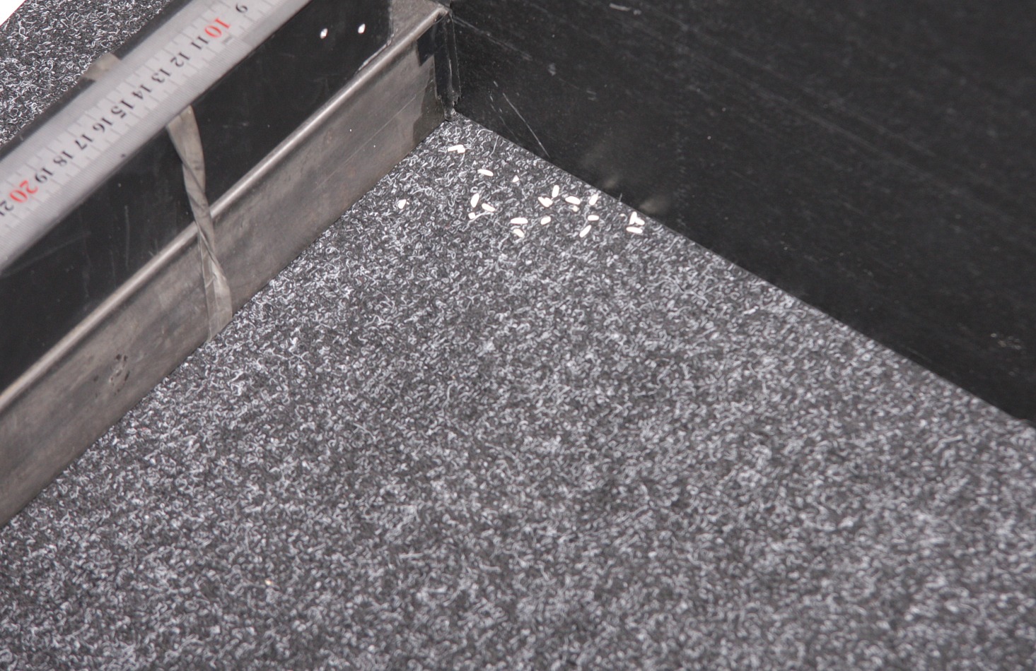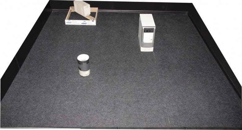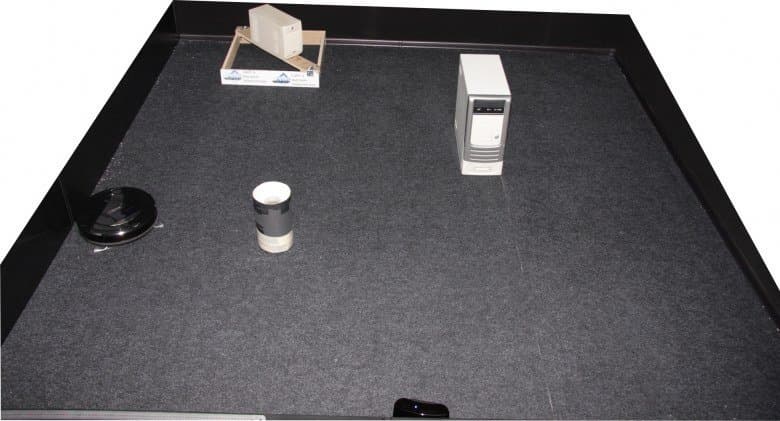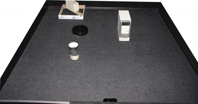 Уборка в тестовом помещении до разряда аккумулятора (в этот раз 96 минут) показала практически те же результаты, что и с щеткой, — робот способен убрать почти весь мусор на доступной ему территории, совсем немного риса осталось в углах, около базы практически чисто: