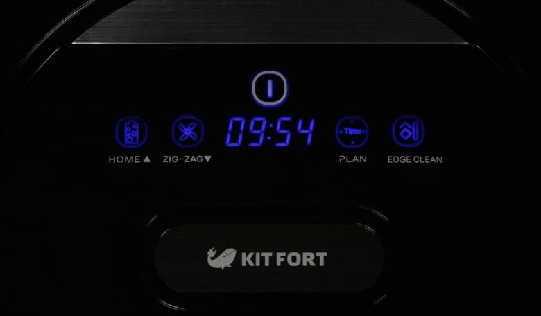 В передней части крышки отсека пылесборника белым нанесены обозначения кнопок. Сами кнопки сенсорные. Кнопка питания располагается под значком питания, а четыре других кнопки — перед надписями. При нажатии на кнопки раздается звуковой сигнал. При работе пылесоса синим светятся значки кнопок. Между кнопками находится сегментный светодиодный индикатор также синего свечения.