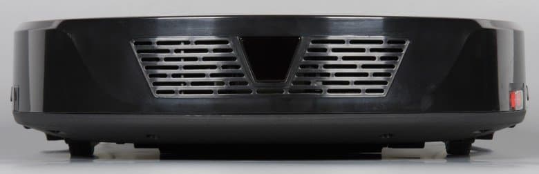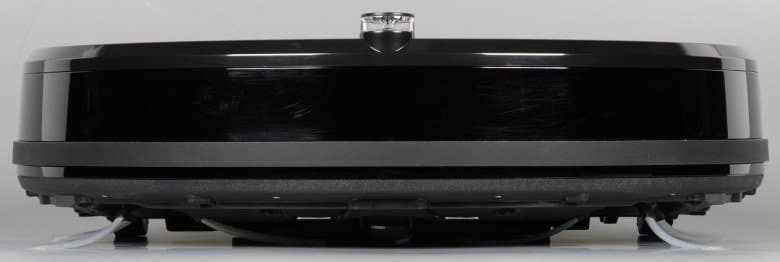 Корпус робота изготовлен из пластика. Бампер и верхняя часть корпуса черная с зеркально-гладкой поверхностью и без покрытия, царапается она легко и следы от пальцев на ней хорошо заметны. Лучше, если бы робот был сверху светлым и не таким марким. Днище — черное матовое без покрытия. Верхняя часть крышки отсека пылесборника — из прозрачного, но плотно тонированного пластика. Сверху спереди есть вставка из тонкого алюминия с неполированной поверхностью.
