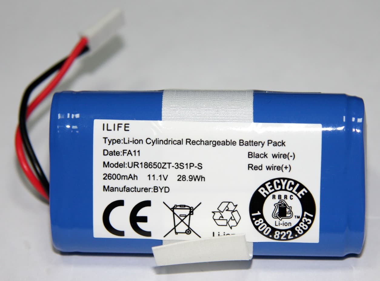 В данном роботе установлена литий-ионная аккумуляторная батарея емкостью 2600 мА·ч и напряжением 11,1 В. Батарейный блок составлен из трех цилиндрических элементов популярного типоразмера 18650.
