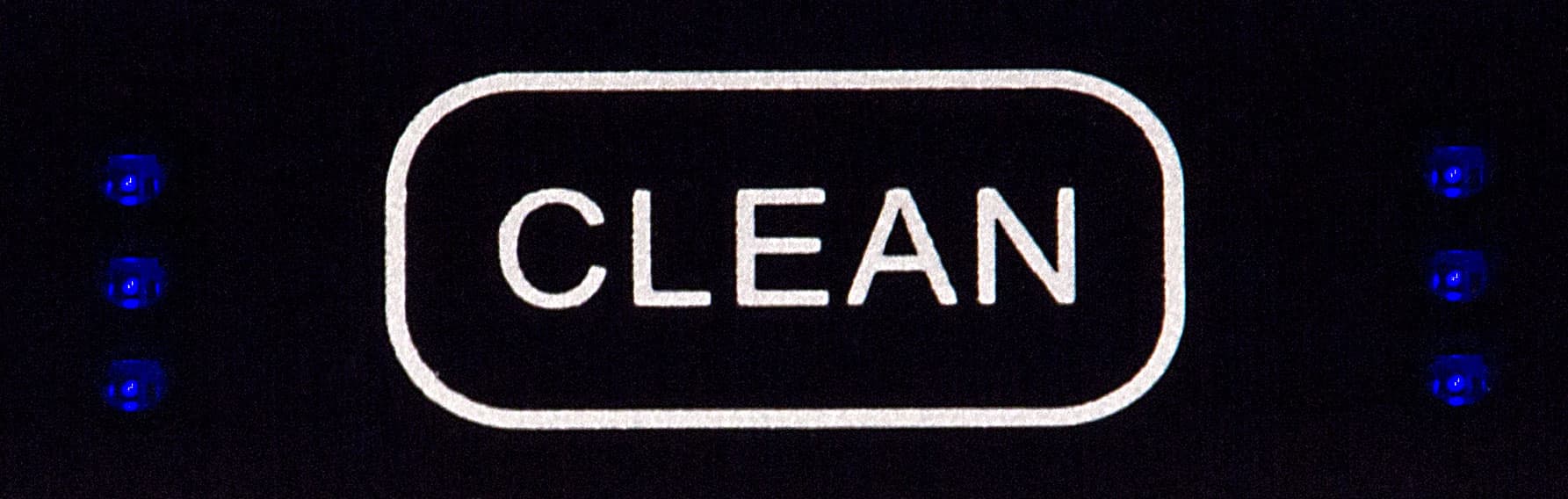 Контрольная панель состоит из одной сенсорной кнопки и двух рядов синих светодиодов по бокам от нее.