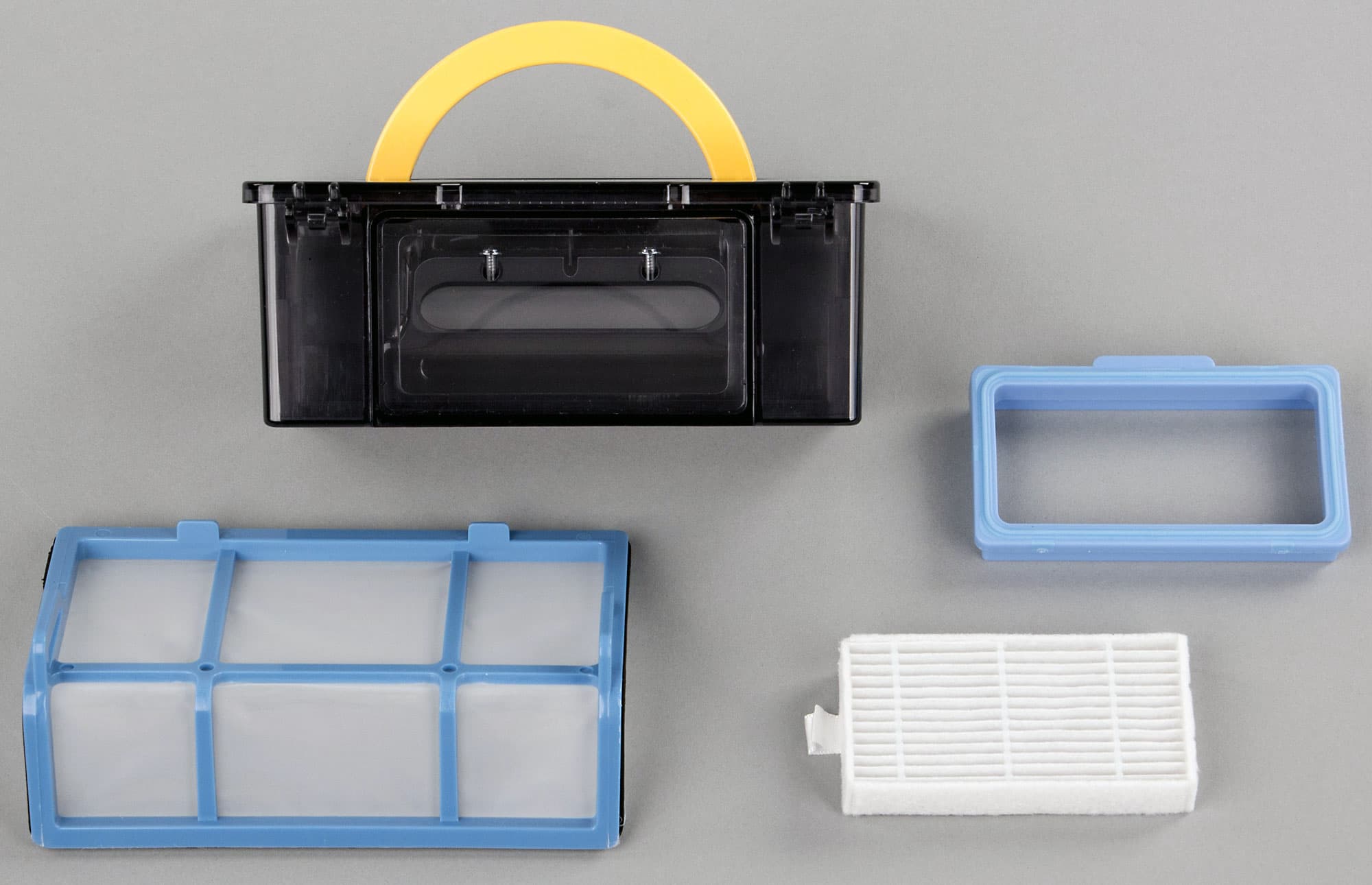 Ниже представлены результаты тестирования по нашей методике, подробно описанной в отдельной статье. Мы уже тестировали роботы-пылесосы с похожей системой сбора мусора и аналогичным набором фильтров, поэтому нам известно, что складчатый фильтр существенно уменьшает поток воздуха и сильно снижает эффективность уборки нашего тестового мусора в виде риса. В итоге складчатый фильтр мы не устанавливали, благо конструкция пылесборника это позволяет сделать без нарушения герметичности. На самом деле первичного сетчатого фильтра вполне достаточно для отделения даже очень мелких частиц, поэтому устанавливать складчатый фильтр нужно только в том случае, если убираемый мусор в основном очень легкий и необходима самая тщательная фильтрация воздуха.