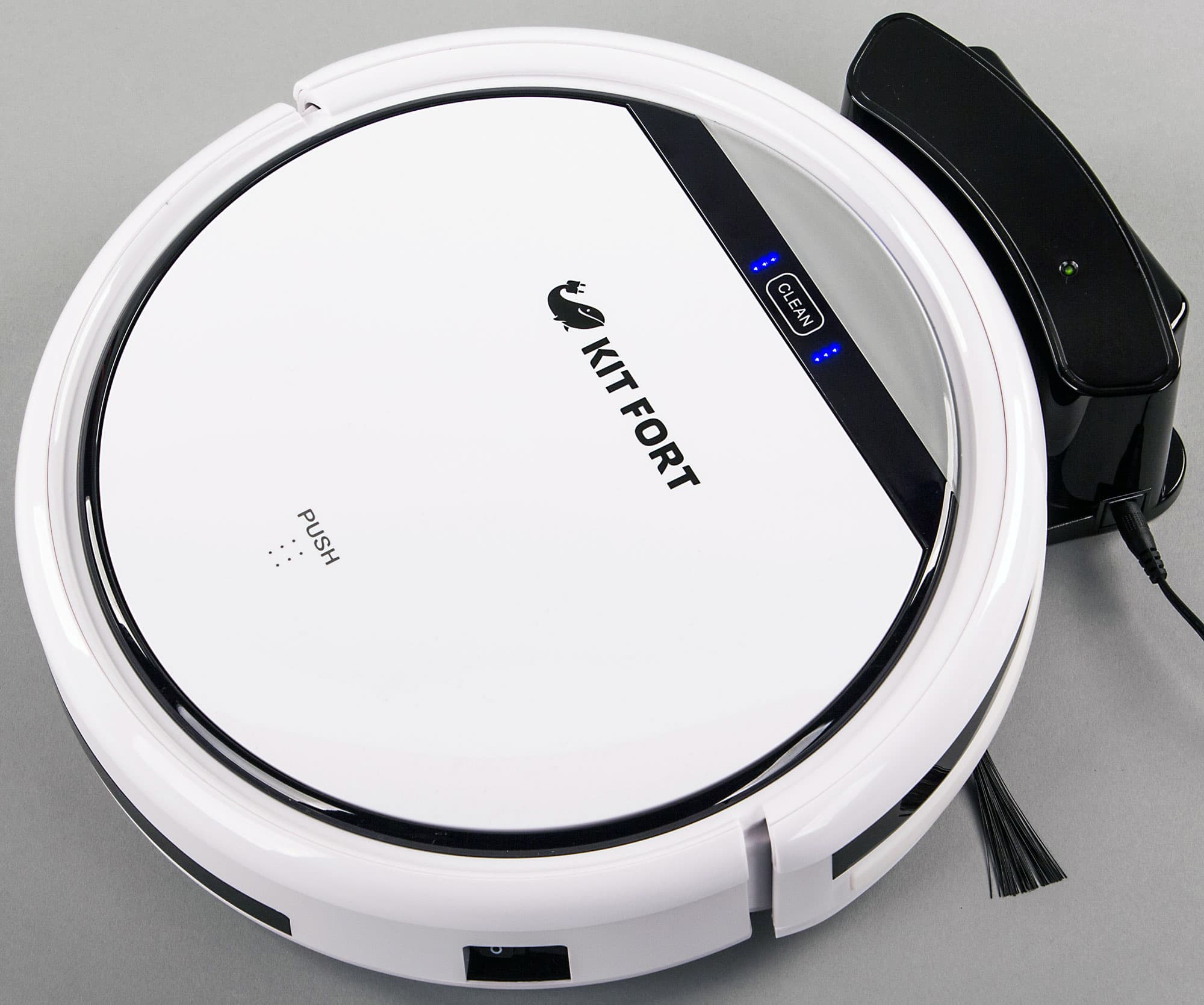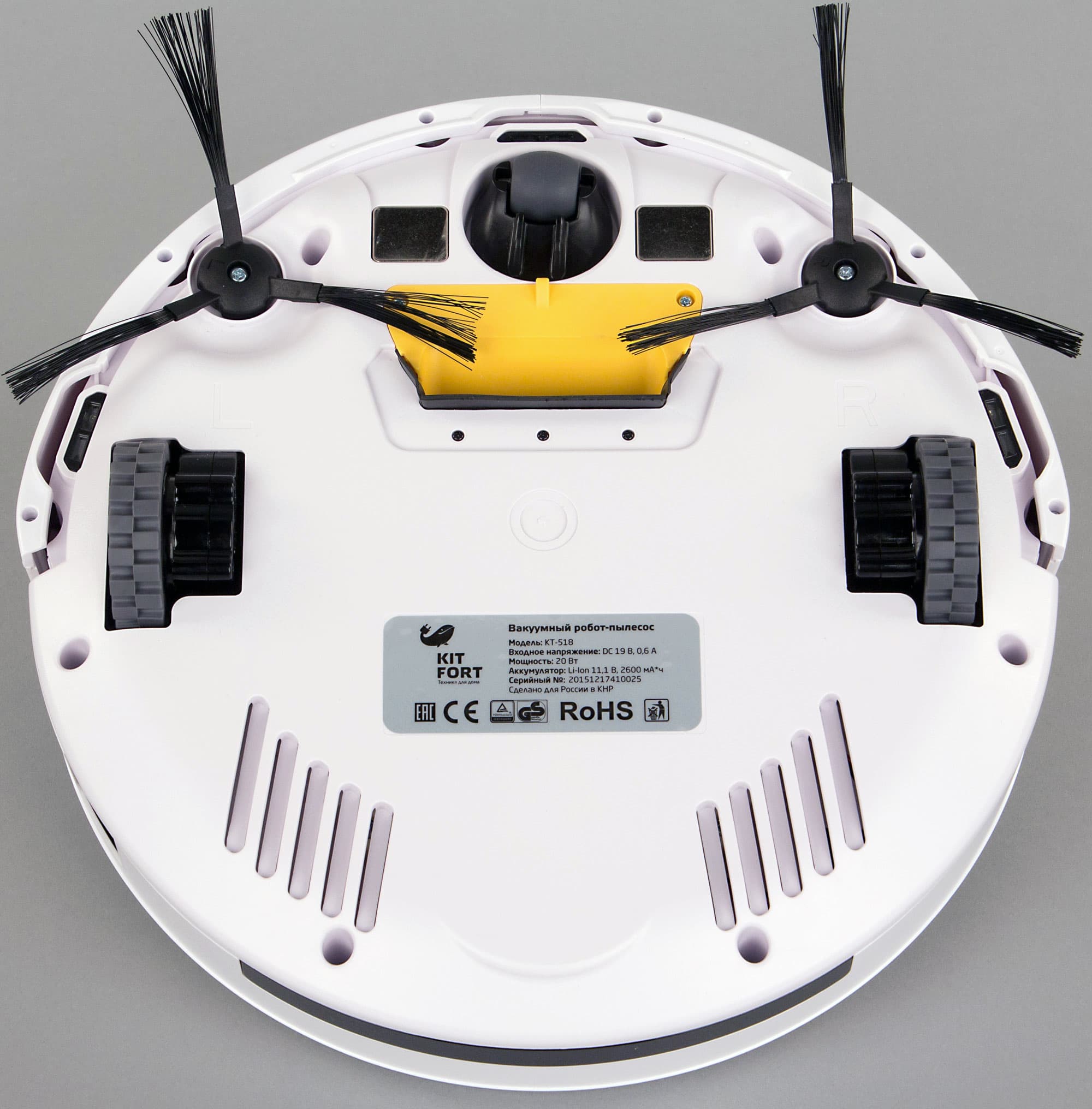 Робот-пылесос Kitfort KT-518 имеет относительно простую конструкцию, однако со своей задачей справляется хорошо, при этом отсутствие основной щетки облегчает чистку и обслуживание робота. В автоматическом режиме Kitfort KT-518 убирает, меняя алгоритм движения, и сам возвращается на базу для зарядки аккумулятора. Кроме того, пользователь может вручную управлять движением робота, включать режим интенсивной очистки локального участка или режим следования вдоль стен, также робота можно запрограммировать на ежедневную уборку в заданное время.