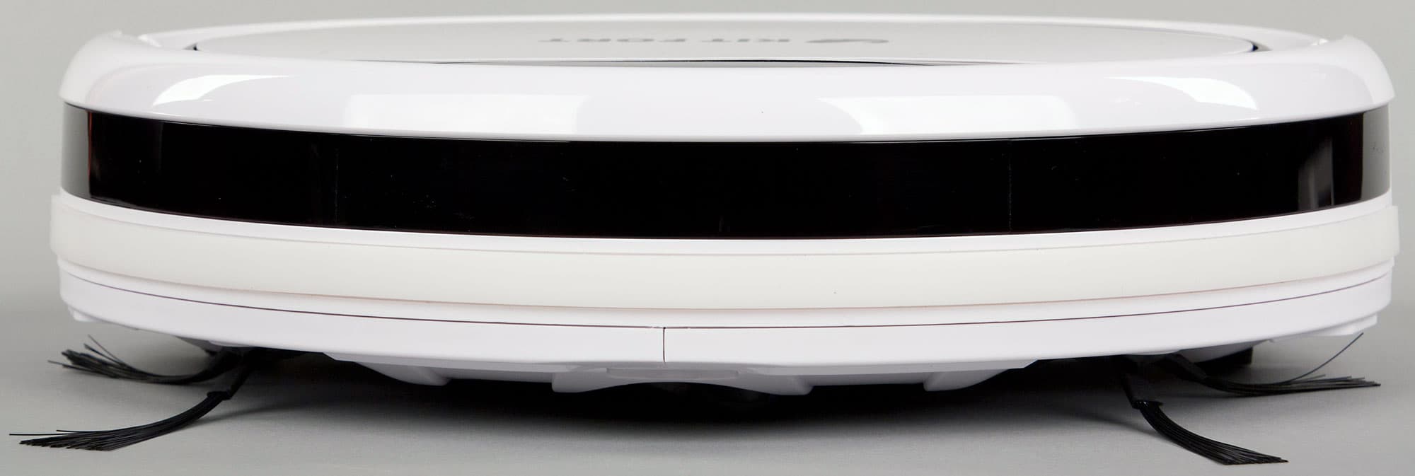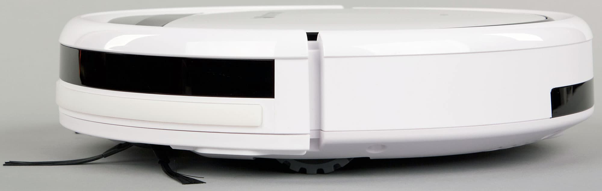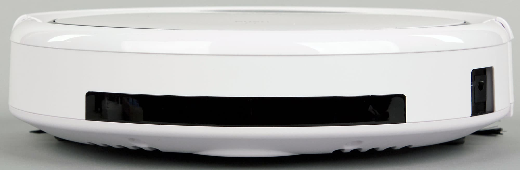 Пылесос имеет почти идеально круглую форму диаметром 305 мм. Края снизу скошены, что помогает роботу преодолевать препятствия.