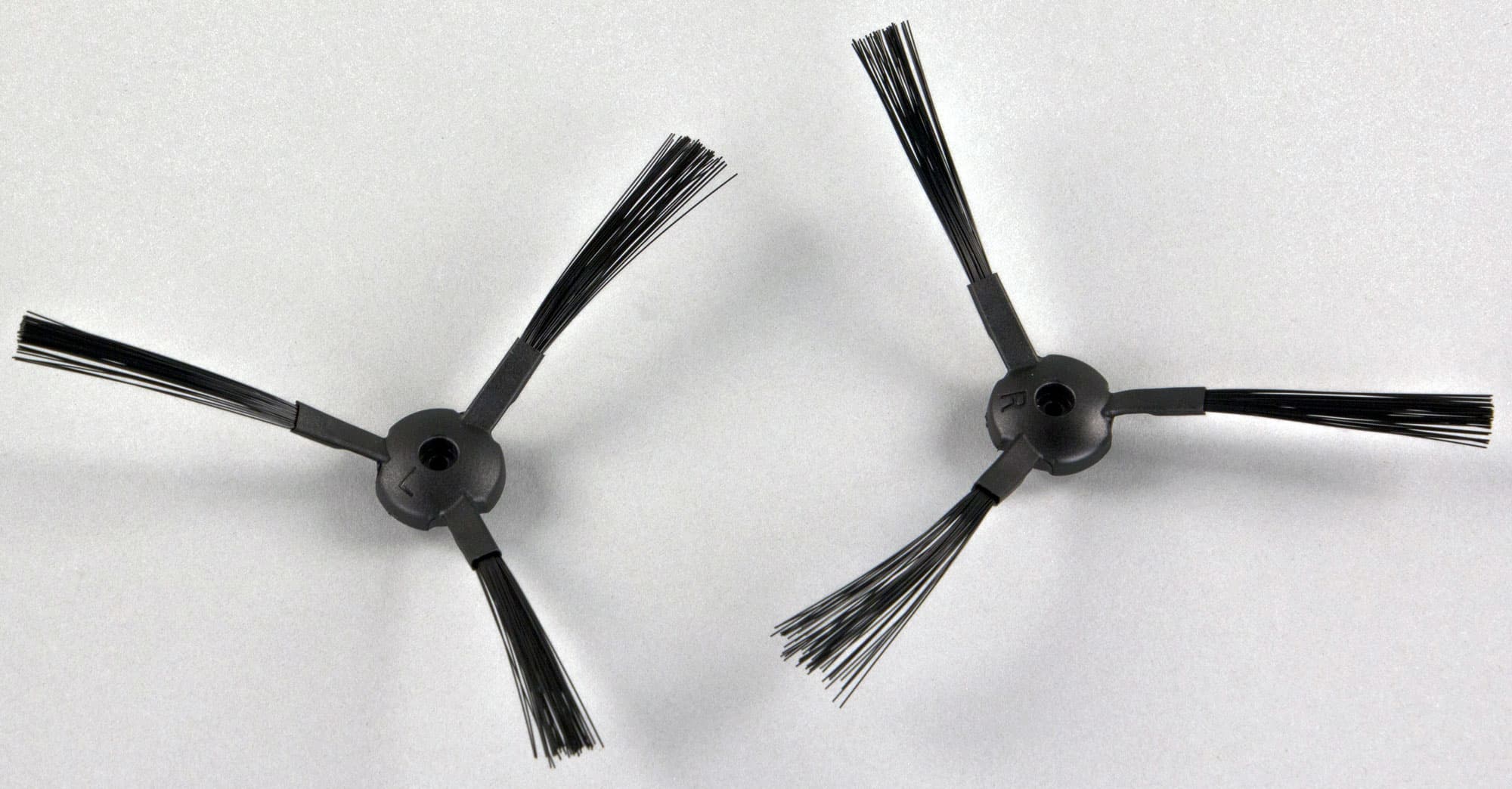 Правая и левая щеточки отличаются поворотом поводков, а чтобы пользователь знал, какую куда устанавливать, на щеточках и на днище выдавлены буквы L и R. К осям приводов щеточки крепятся с помощью саморезов с головкой под крестовую отвертку. Отметим, что редукторы приводов щеток и колес позволяют их проворачивать рукой, это очень помогает, когда нужно вытащить робота, например, из под дивана, под которым он застрял, или распутать что-то намотавшееся на колеса или щеточки.