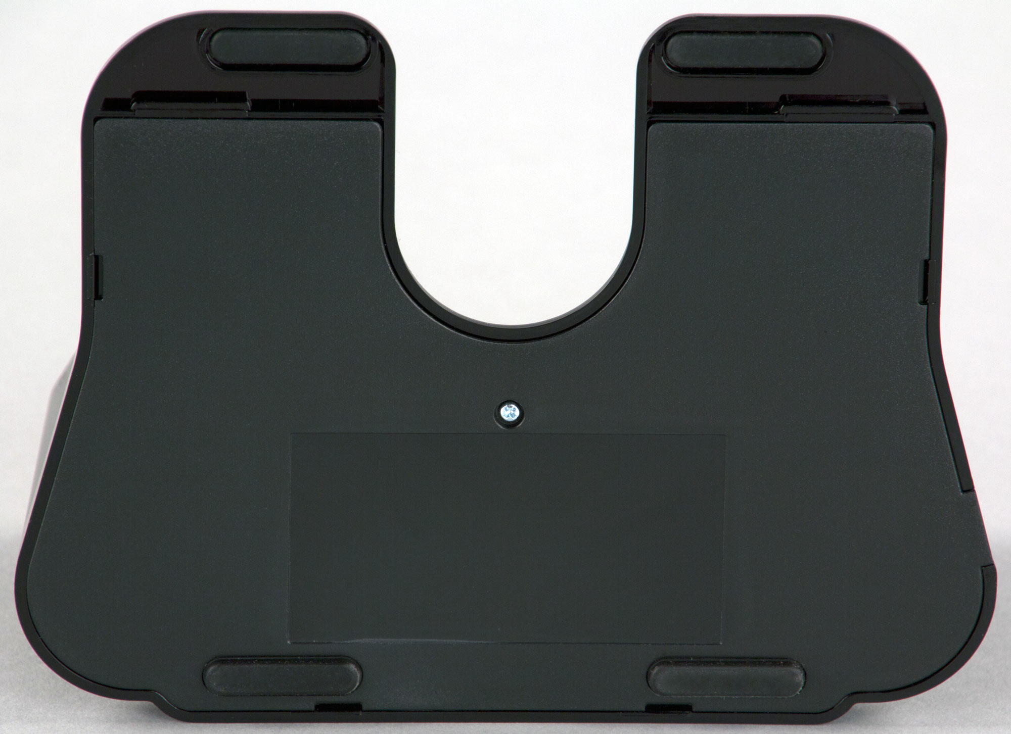 Сдвиг бампера вызывает срабатывание механических датчиков препятствий. Для защиты мебели спереди на бампер в нижней его части наклеена полоса из упругого пластика. Выше на бампере за окошком из тонированного пластика находятся ИК-датчики обнаружения препятствий, базовой станции и, возможно, приемник команд с пульта ДУ. Что-то из перечисленного, видимо, также расположено за тонированным окошком в задней части корпуса.