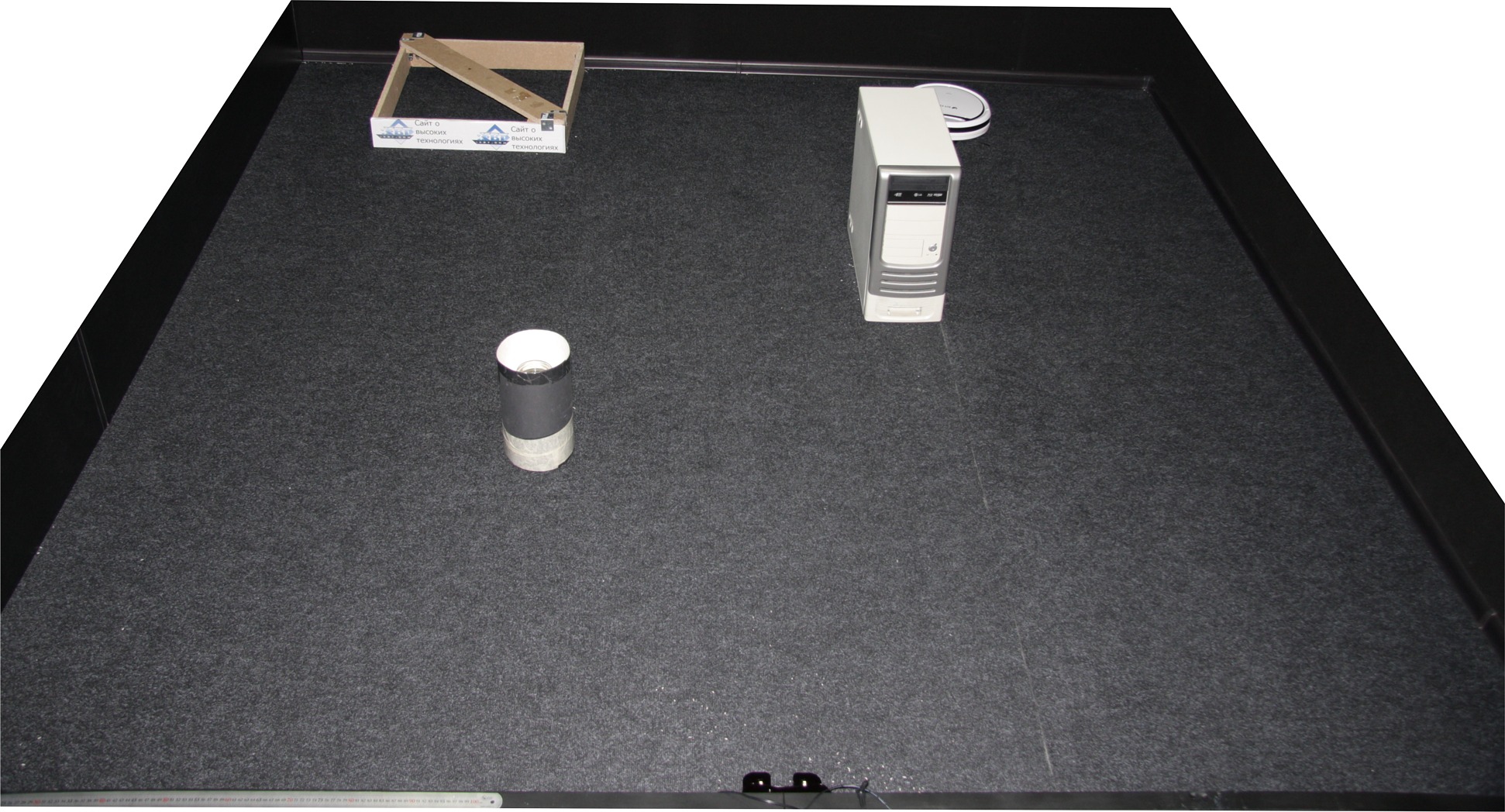 Уборка в тестовом помещении до разряда аккумулятора показала, что робот способен убрать почти весь мусор на доступной ему территории, совсем немного риса осталось в углах и у дальней стенки узкого загона: