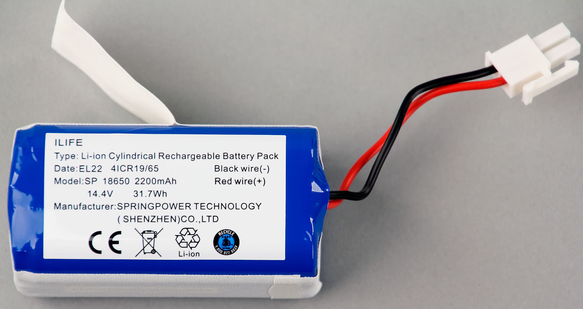 В данном роботе установлена литий-ионная аккумуляторная батарея емкостью 2200 мА·ч и напряжением 14,4 В. Батарейный блок составлен из четырех цилиндрических элементов популярного типоразмера 18650.