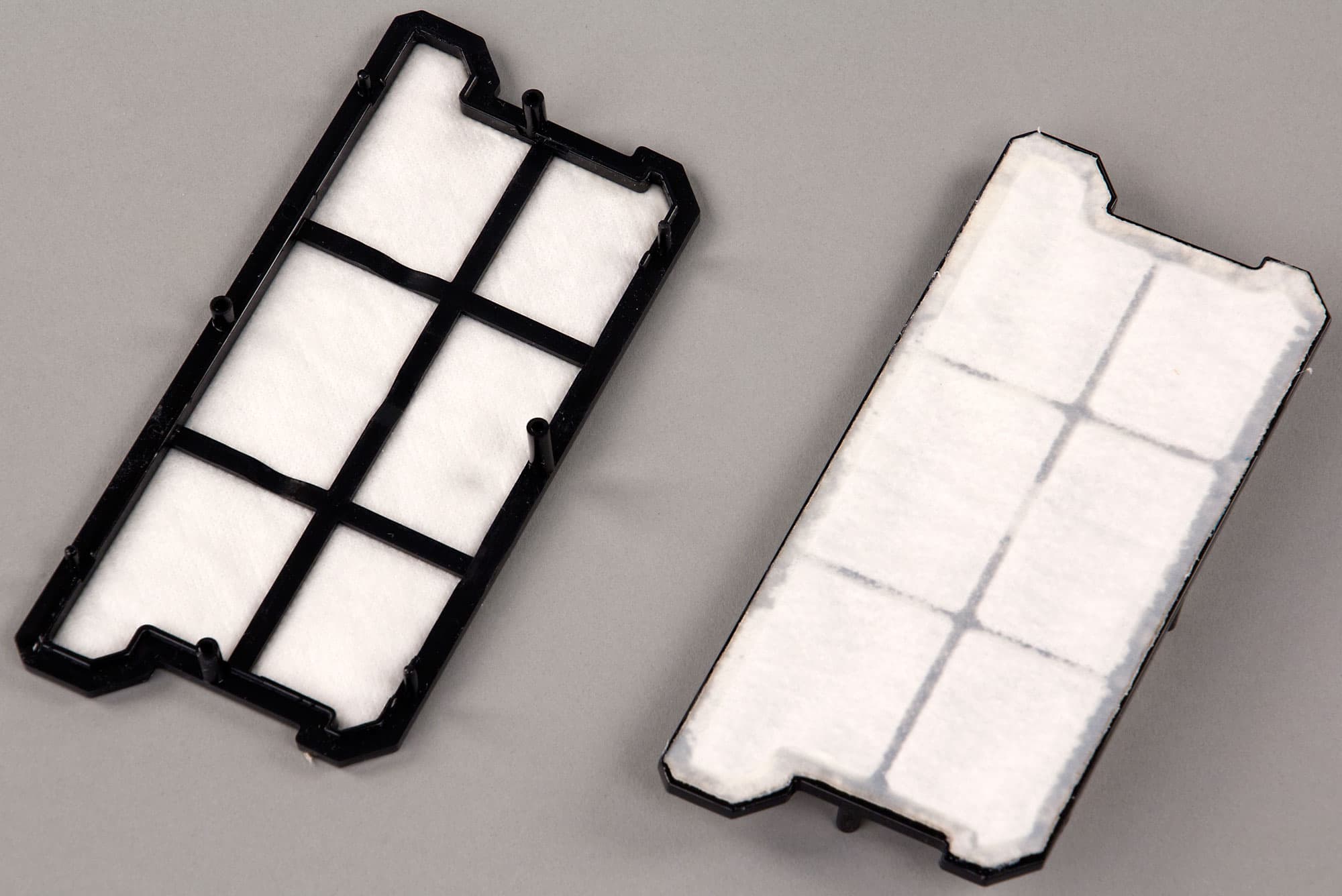 Затем по необходимости нужно очистить более плотный фильтр тонкой очистки и фильтр-сеточку. Удобно производить эти операции, а также опустошать пылесборник с помощью обычного пылесоса с щелевой насадкой. Только при этом нужно постараться не сорвать уплотнение с крышки пылесборника. Второй фильтр после сеточки на рамке как минимум двухслойный.