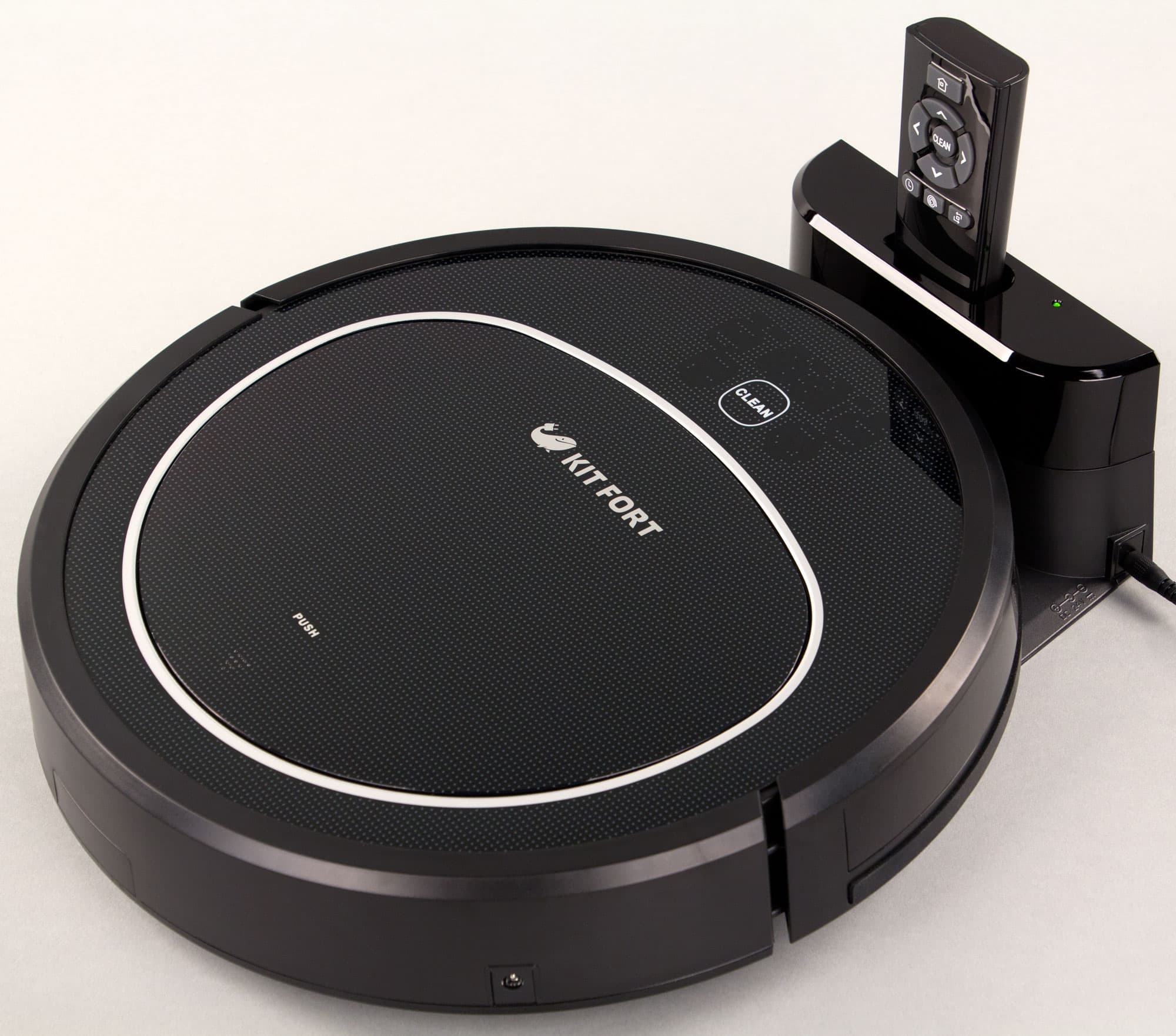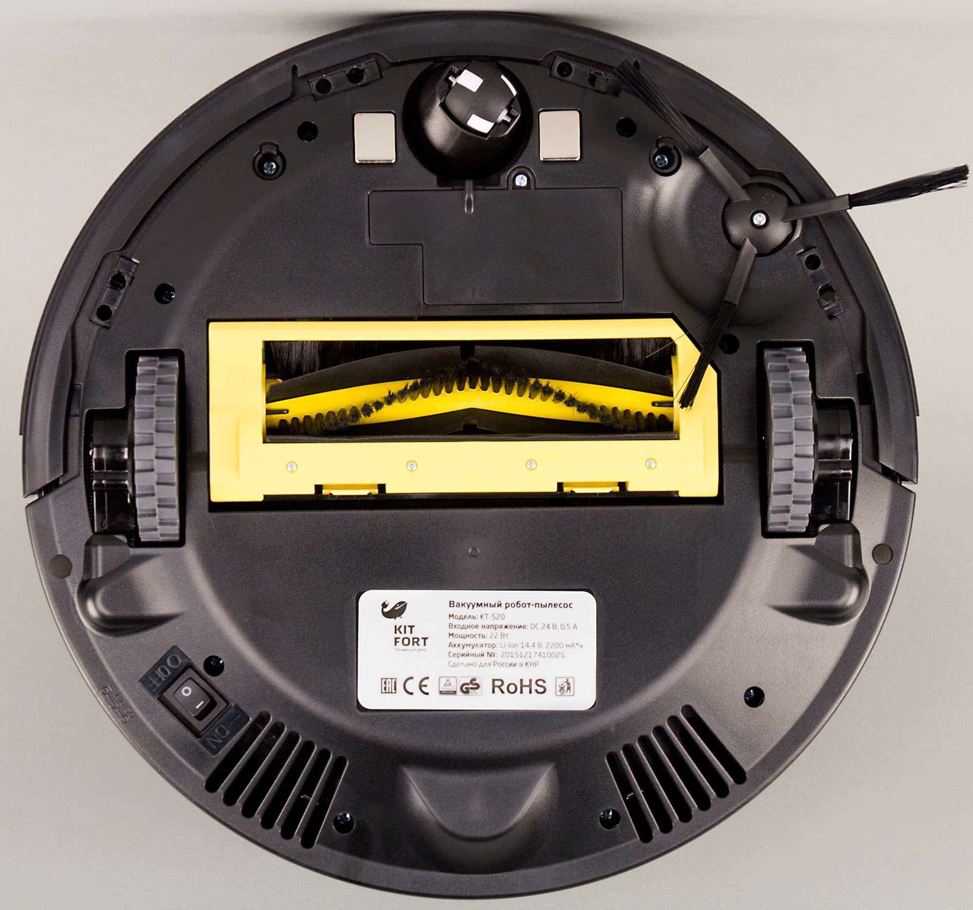Робот-пылесос Kitfort KT-520 имеет круглый корпус, передний механический бампер, два ведущих колеса, широкую основную щетку и одну боковую щеточку. Такую конструкцию можно считать классической. Проворачиваемые рукой редукторы, передний ролик с датчиком вращения, подшипники скольжения основной щетки, подвешенный, а не закрепленный жестко блок основной щетки, относительно низкий корпус без выступающих вверх частей и ряд других особенностей улучшают эксплуатационные свойства робота, способствуют росту качества уборки, в том числе на коврах, и повышают срок службы устройства.
