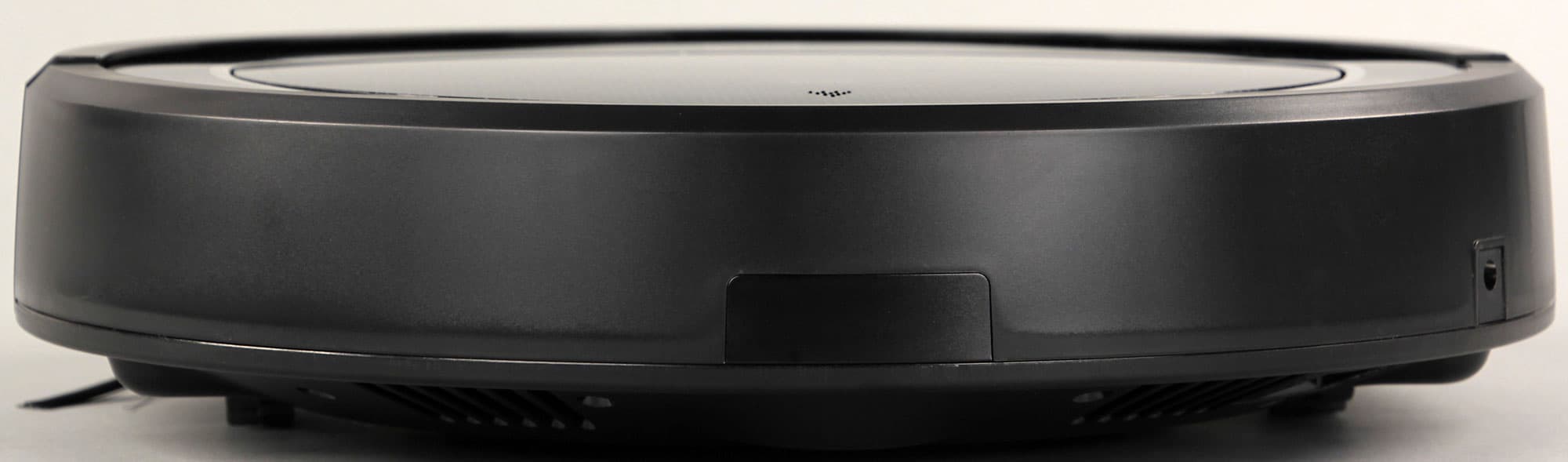 Пылесос имеет почти идеально круглую форму диаметром 335 мм. Края снизу скошены, что помогает роботу преодолевать препятствия, а некоторая угловатость при переходе от верхней панели к боковой поверхности снижает вероятность того, что пылесос будет застревать под препятствиями с небольшим просветом.