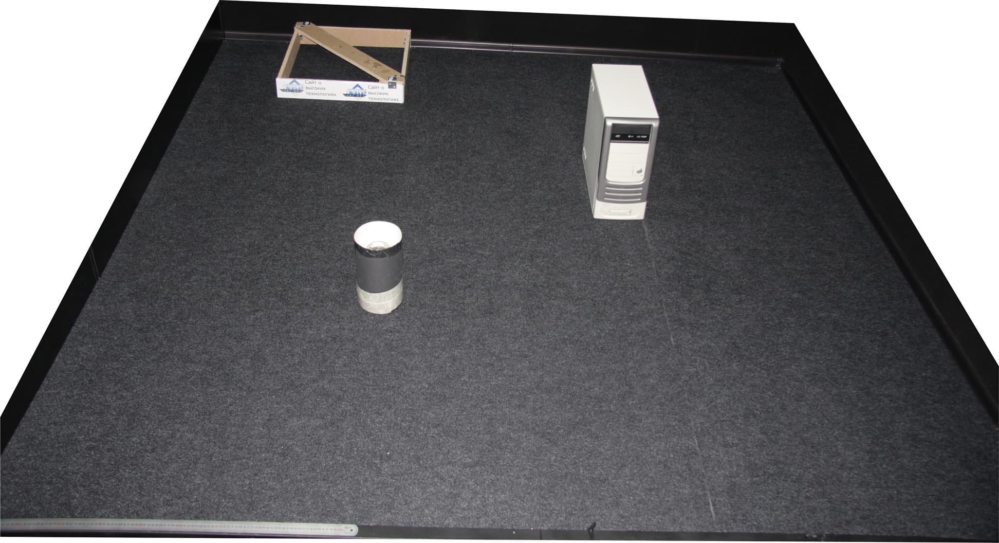 Уборка в тестовом помещении до разряда аккумулятора показала, что робот способен убрать почти весь мусор на доступной ему территории, совсем немного риса осталось в углах и около базы (на второй фотографии ниже центр базы был на черной полоске на барьере):