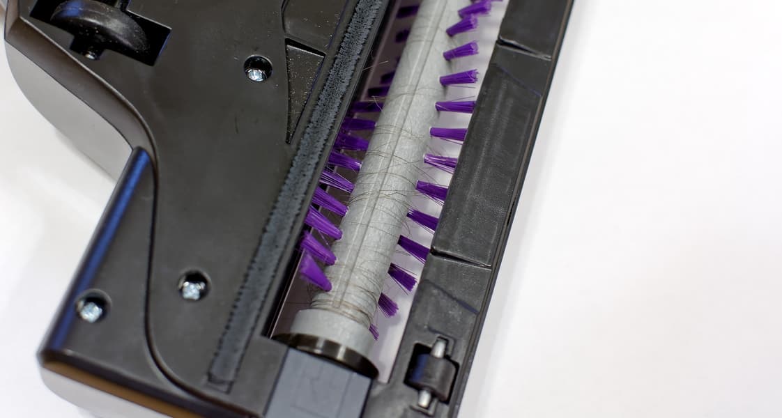 Дальше нужно вынуть из корпуса щетку и очистить ее (инструкция рекомендует для удаления волос использовать ножницы), а также проверить, насколько хорошо вращается подшипник со стороны защелки. Если плохо — его следует вынуть, очистить ось, втулку и шайбу от грязи и пыли, и смазать каплей машинного масла или нанести немного густой смазки.