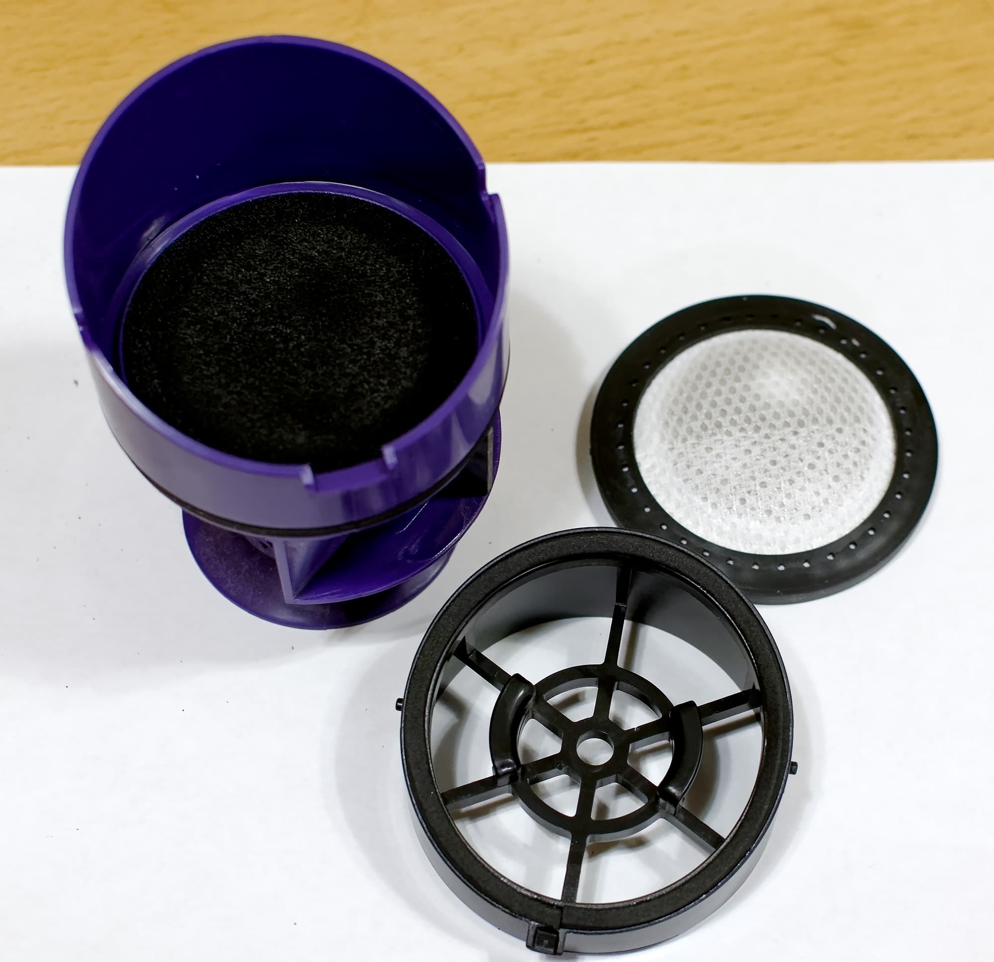 Уход за фильтрами сводится к полной разборке пылесборника, промыванию всех составляющих (в т. ч. фильтров) водой, высушиванию всех частей и сборке.