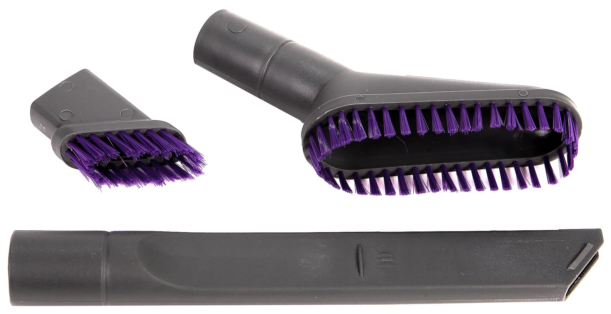 К пылесосу прилагается щелевая насадка традиционной конструкции (ее общая длина 254 мм, узкой части — 175 мм). На насадку можно надеть щеточку. Также прилагается щетка с щетиной средней жесткости (обычно такие называют «мебельными»).