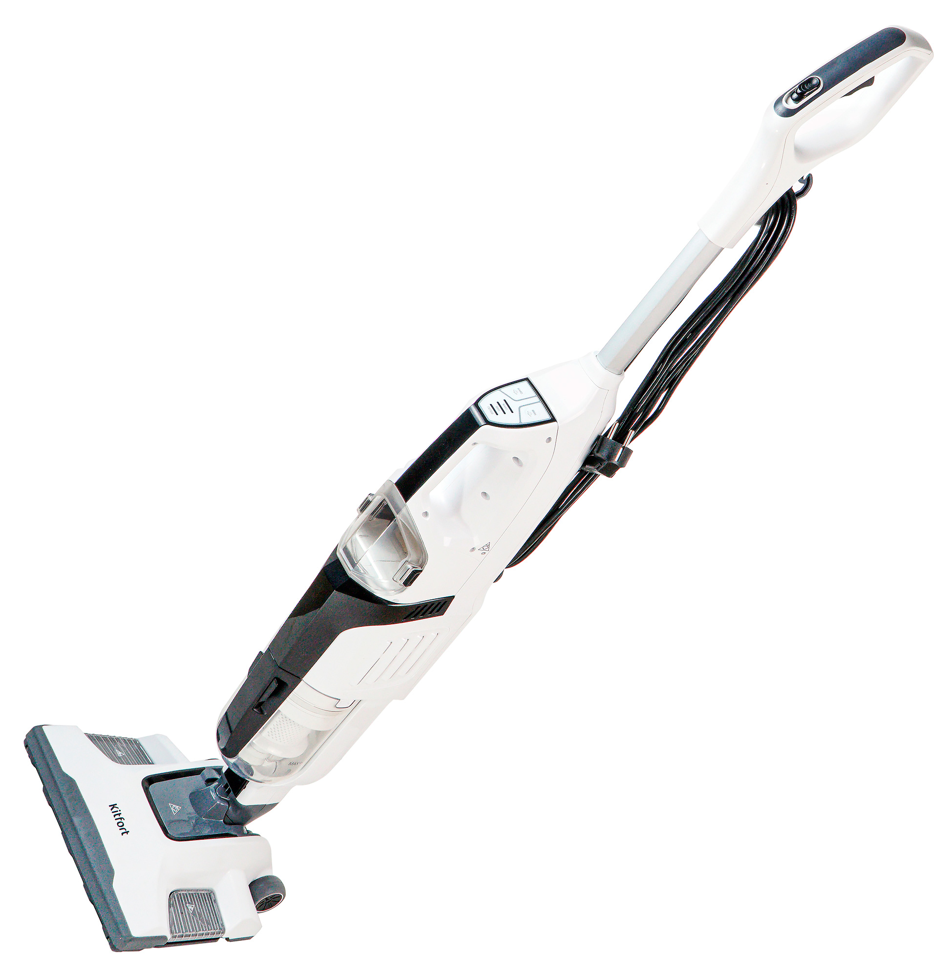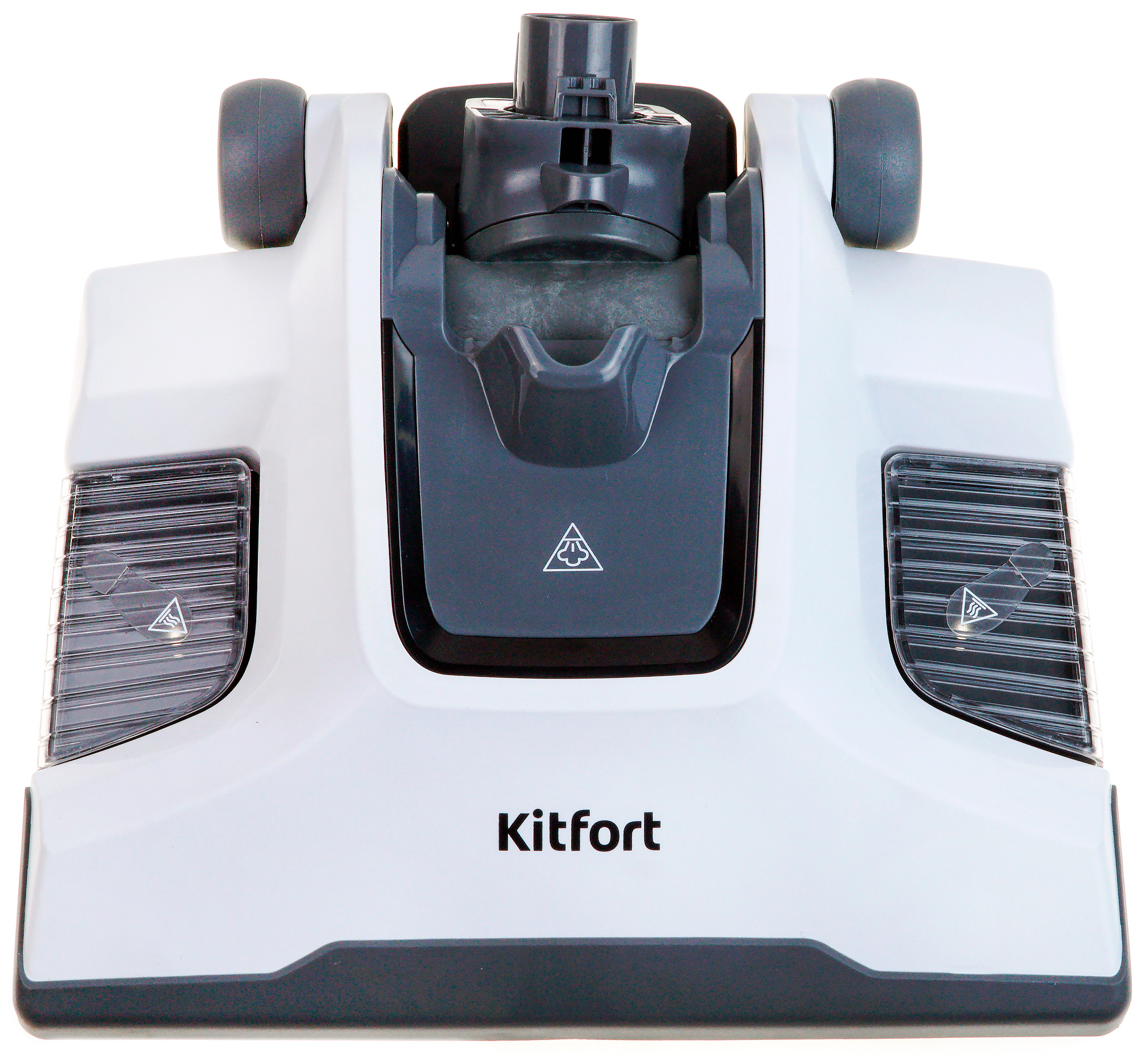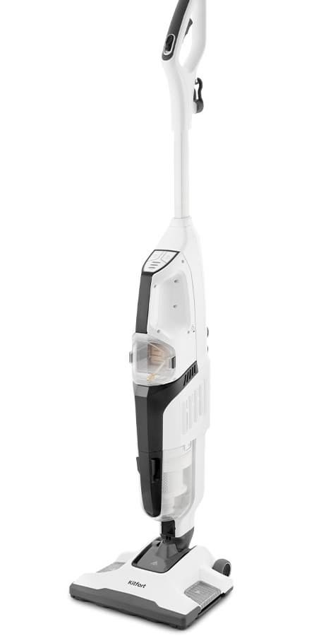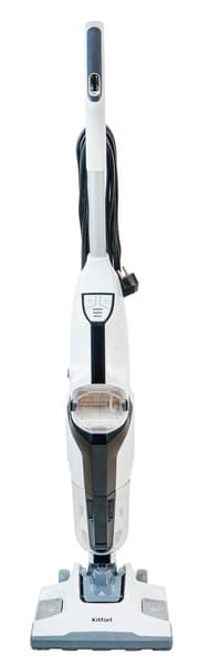 Конструкция пылесоса Kitfort KT-556 вполне традиционна для вертикальных паровых пылесосов — основной блок пылесоса и парогенератора, рукоятка с элементами управления и напольная насадка с двумя степенями свободы.