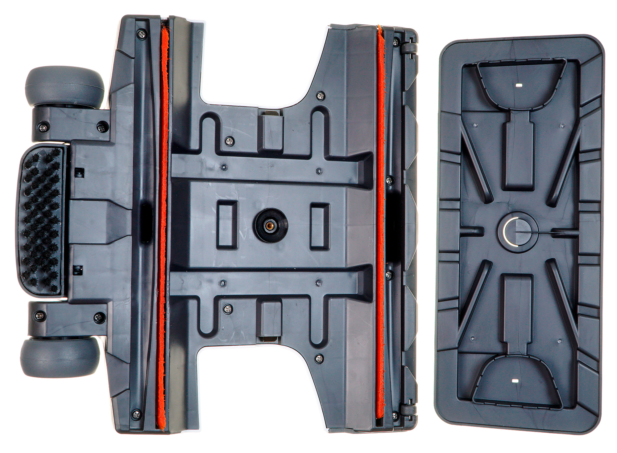 Для использования напольной насадки на ковровых покрытиях настоятельно рекомендуется использовать рамку, идущую в комплекте. Конструкция напольной насадки позволяет это делать, не снимая тряпки из микрофибры, — эта мелочь довольно ощутимо сэкономит время и силы, если вам при уборке часто приходится переходить с паркета на мягкие покрытия и наоборот.