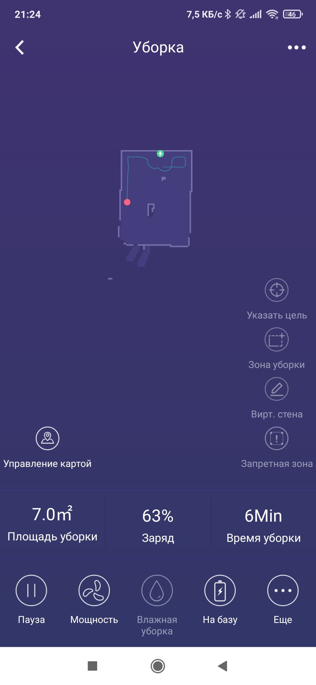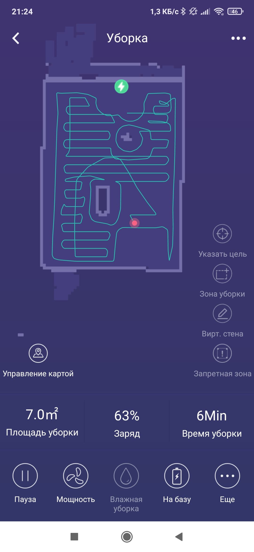 За следующие десять минут пылесос продолжил уборку без особенных происшествий. Алгоритм уборки оказался примерно тем же самым, а время уборки составило 7 минут и 8 секунд.