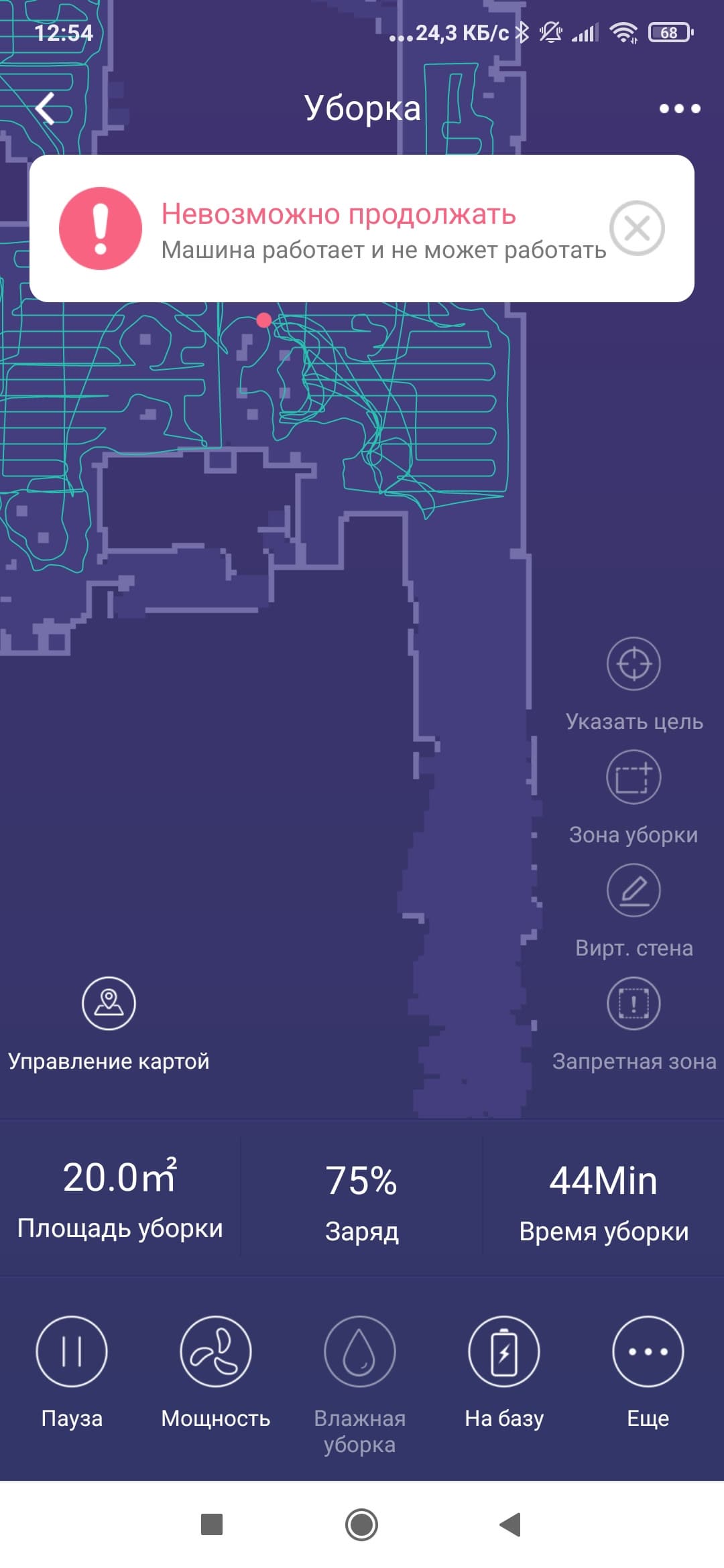- Редактирование карт уборки (установление на картах виртуальных стен и зон, запрещенных для уборки)