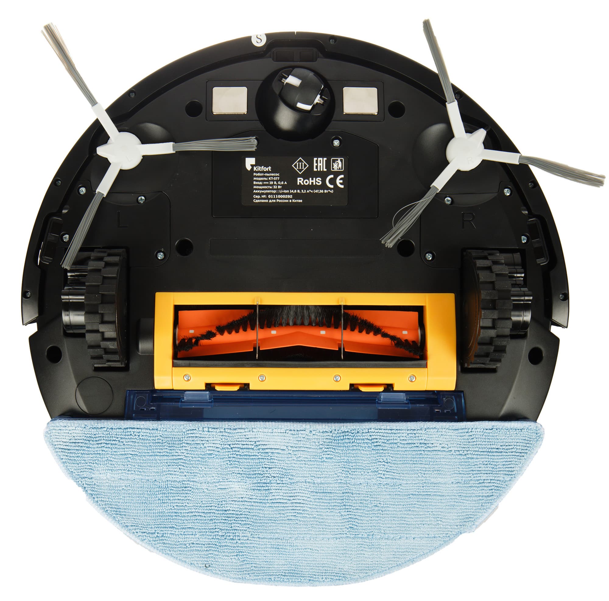 По центру возвышается башенка лидара, на которой нанесен логотип Kitfort.