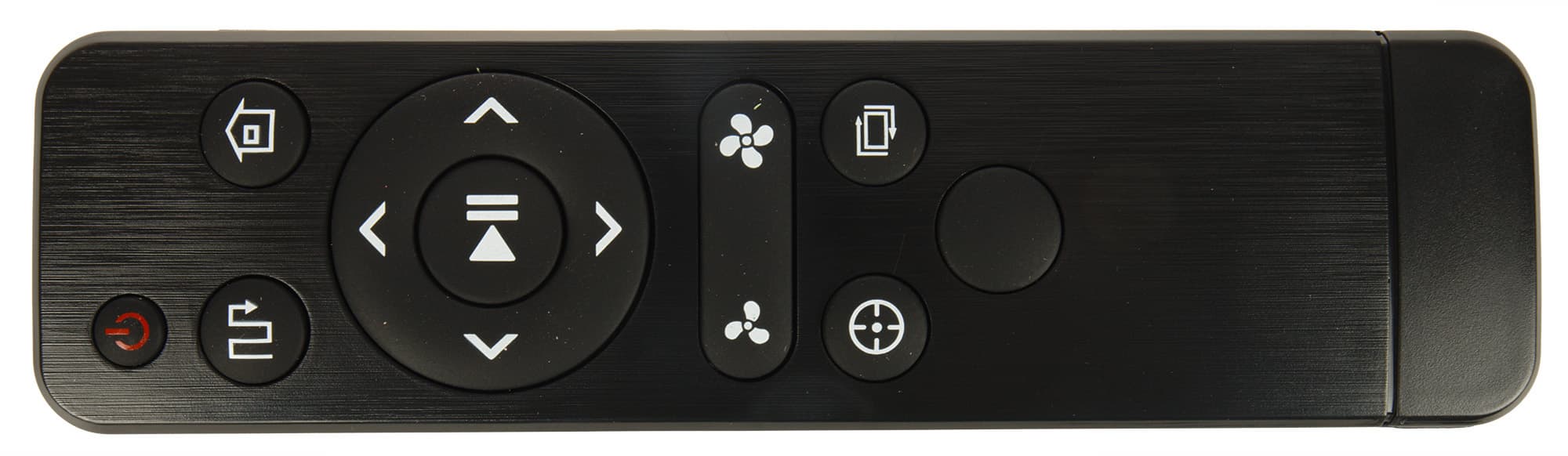 Инфракрасный пульт ДУ сделан из черного пластика. Он имеет 13 кнопок, питается от двух батареек ААА и выглядит вполне стандартно (подобные пульты мы неоднократно видели у продуктов Xiaomi, так что и по размеру, и по расположению кнопок пульт соответствует популярному ныне «стандарту»).