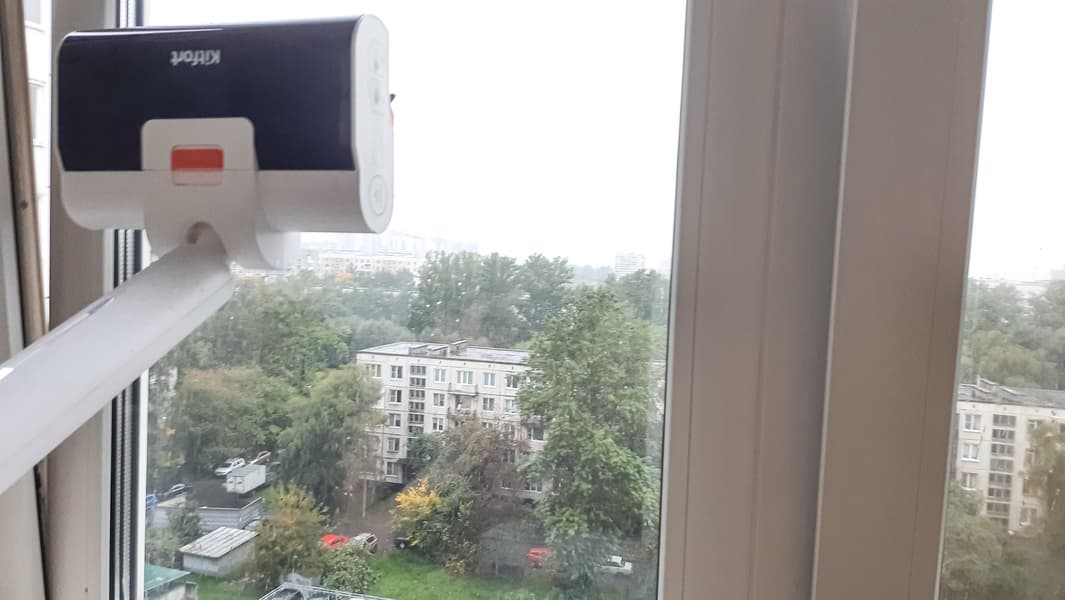 Сбрызнули окно небольшим количество средства для мытья стекол и включили швабру. Благодаря длинной ручке шваброй было легко достать до самого верха. Даже учитывая сильное загрязнение стекла, достаточно оказалось пройтись шваброй один раз вверх и опустить ее по той же линии вниз, резинка на корпусе щетки отлично собрала лишнюю влагу.