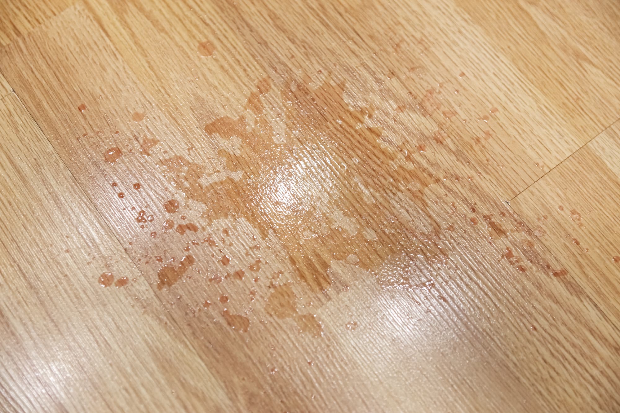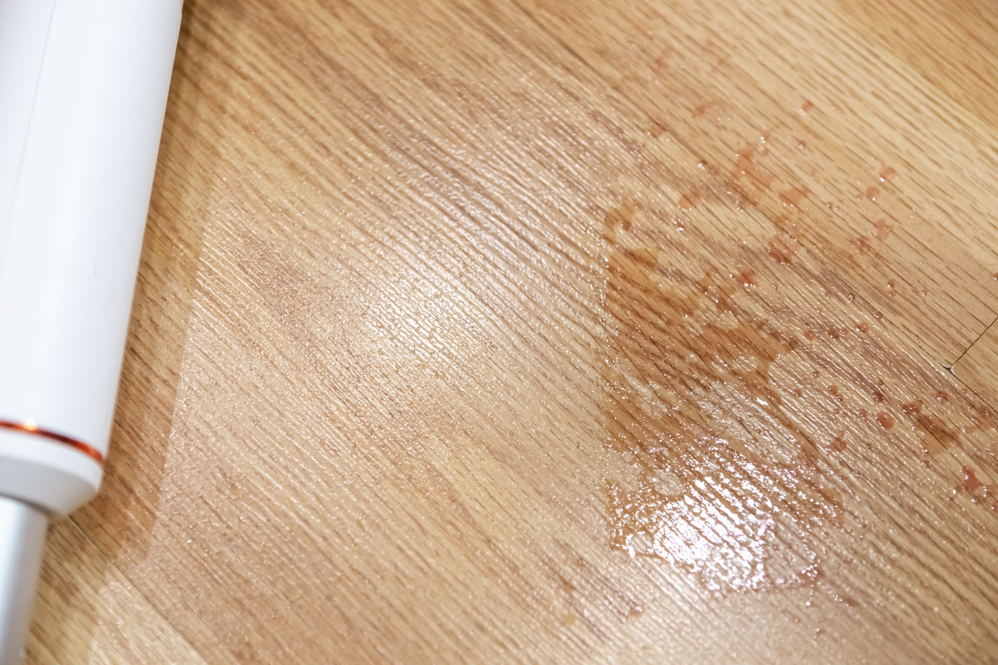 Далее мы усложнили задачу, создав на полу пятно из крепко заваренного каркаде с добавлением 10 ложек сахара. За три часа жидкость на ламинате высохла и превратилась в липкую корочку.