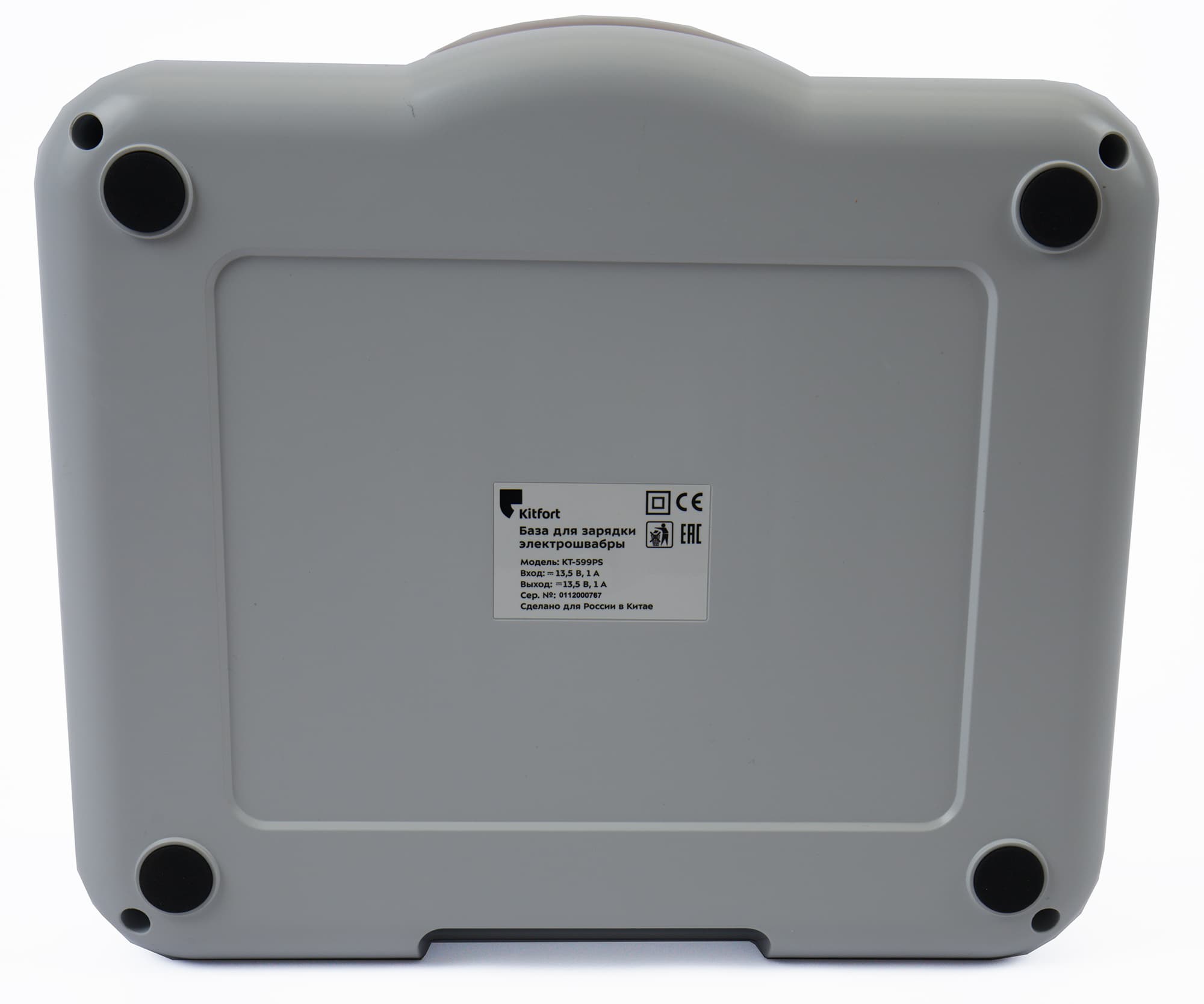 Электрошвабра в вертикальном положении на базе держится уверенно и крепко. По высоте и в диаметре компактная Kitfort KT-599, размещенная на базе, не занимает много места, так как база сама по себе заметно ниже, чем стандартное ведро для мытья полов. Высота базы — 17,5 см, высота швабры вместе с базой — 129 см.
