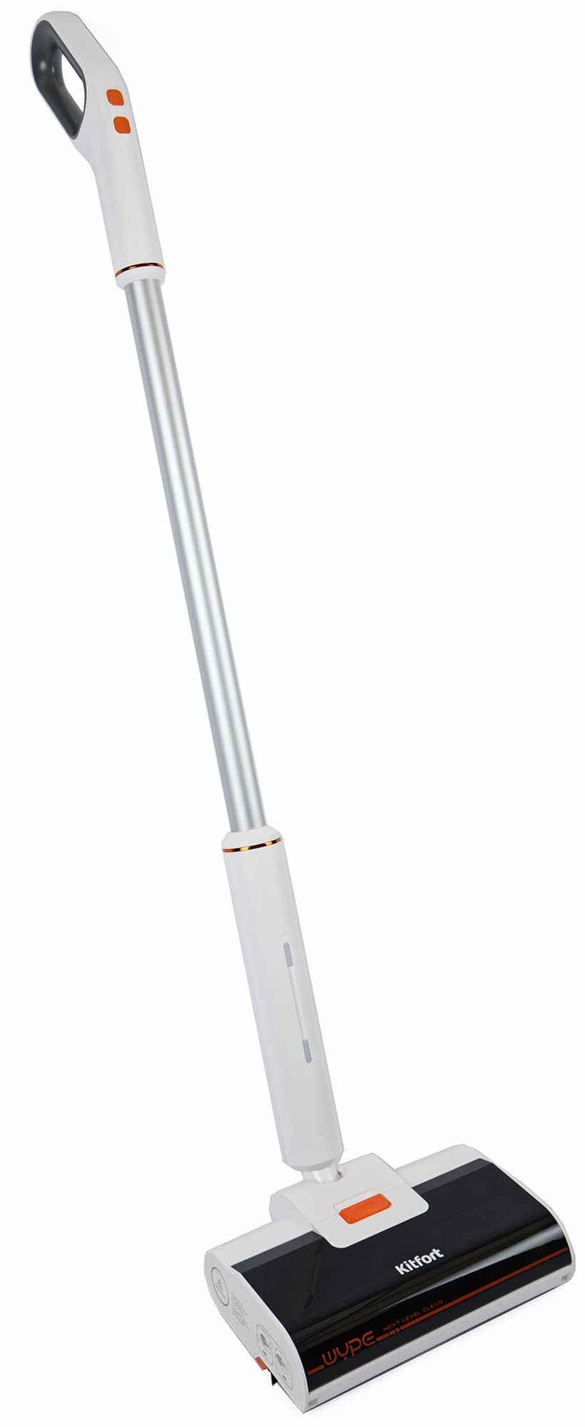 Сама электрошвабра состоит из напольной щетки, основного блока с индикаторами, удлинительной трубки и ручки, на которой находятся кнопки управления прибором.