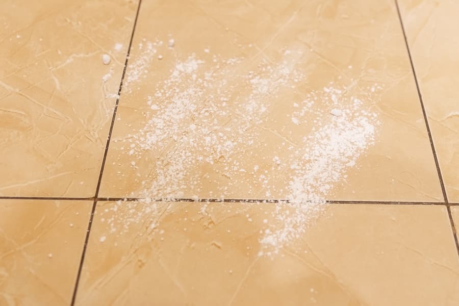На кафель мы рассыпали зубной порошок и приступили к уборке. Здесь нас особенно интересовало, останутся ли разводы на полу.