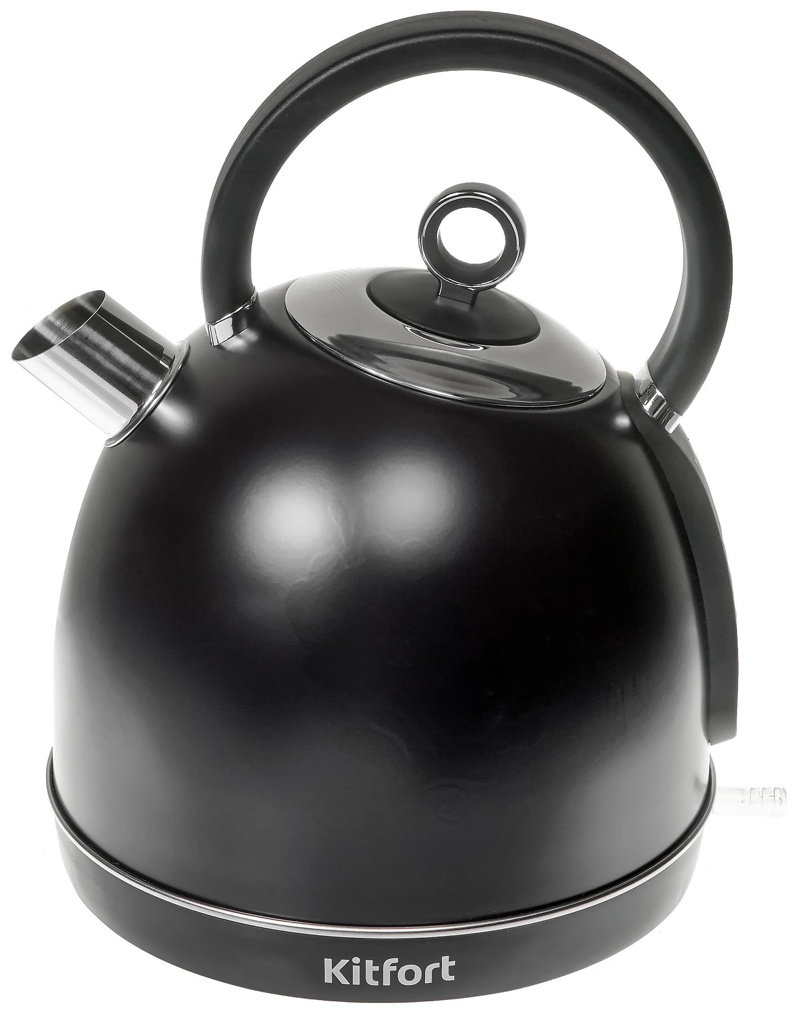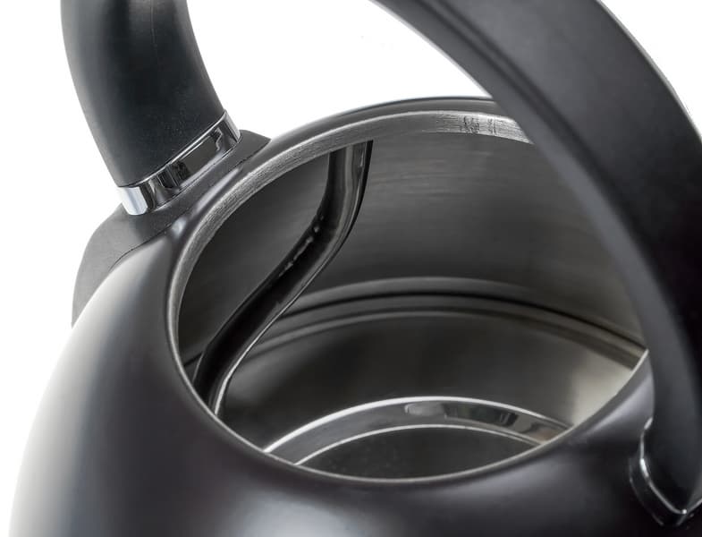 Колба у чайника сделана из нержавеющей стали. Покрытие — черная матовая краска.