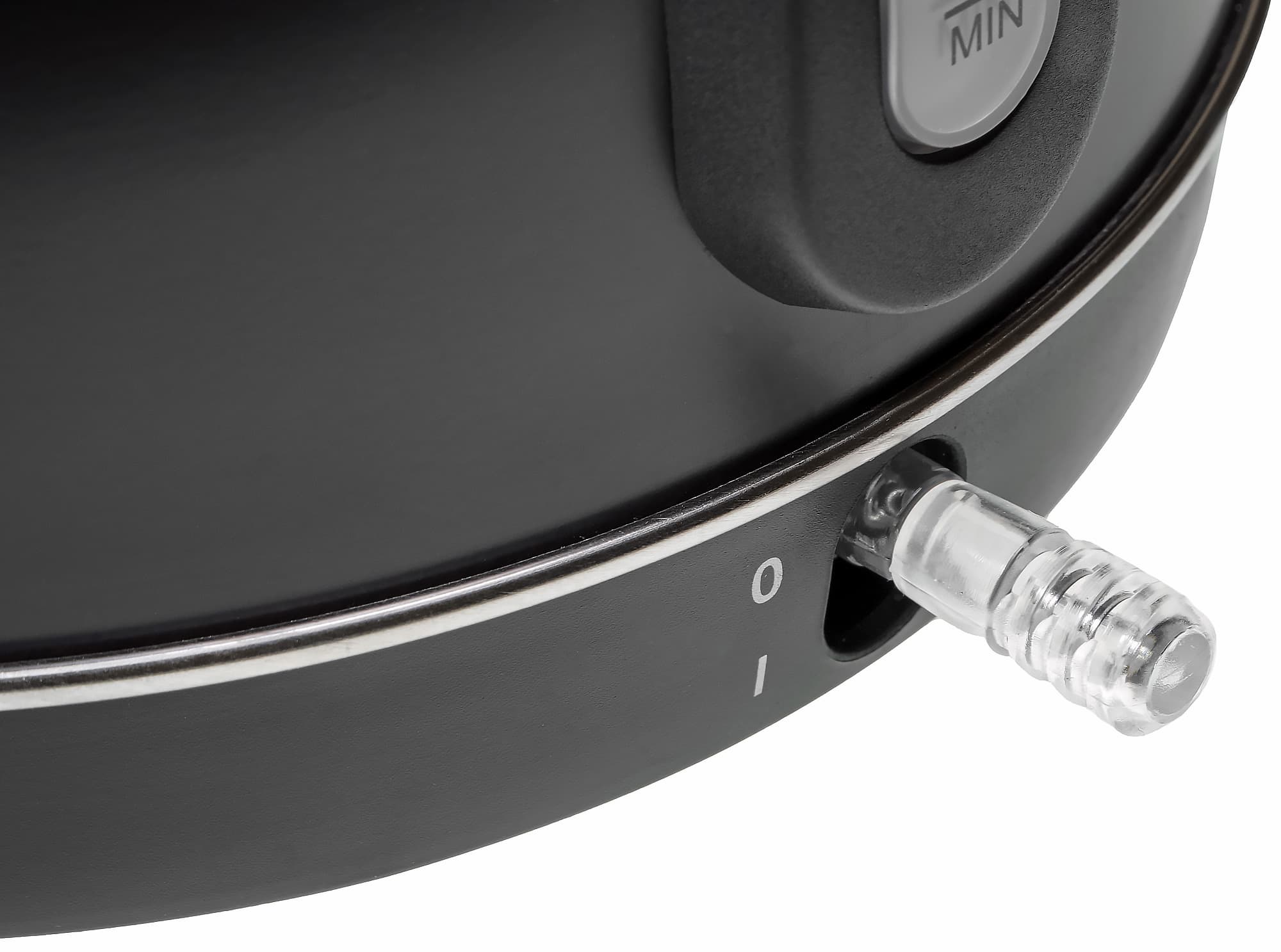 Также наше внимание привлек способ монтажа «окошка» для индикации уровня воды: в колбе чайника сделано два небольших отверстия (а не большая прорезь, как обычно бывает у пластиковых корпусов), через которые вода и попадает в окошко.