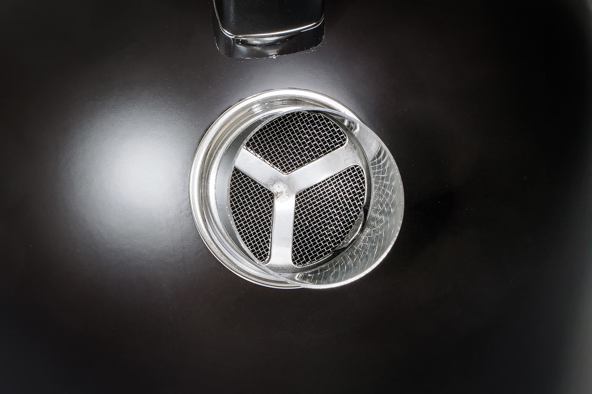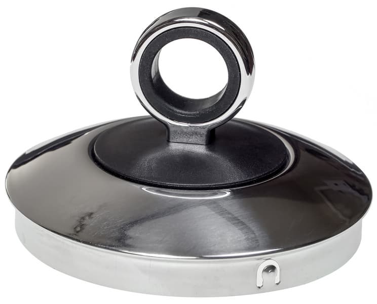 Металлическая крышка не оснащена какими-либо механизмами и снимается вручную. Для крепления крышки предусмотрены классические «ушки», цепляющиеся за корпус чайника. Верхняя часть крышки сделана из сочетания черного матового пластика и пластика, окрашенного под металл.