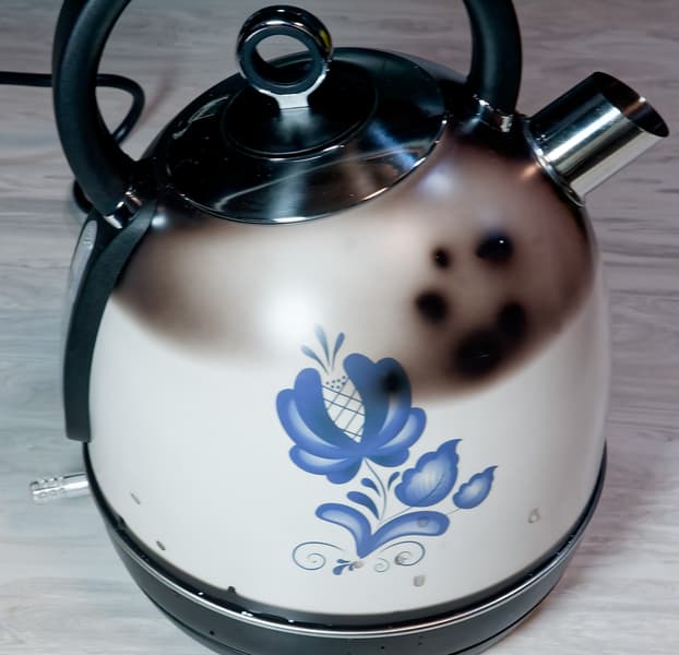 Кроме того, если во время наполнения чайника на внешней стороне корпуса остались брызги, то пока эти капли не испарятся, они будут выглядеть как пятна на белом фоне. Потом, конечно, ситуация исправится сама собой.