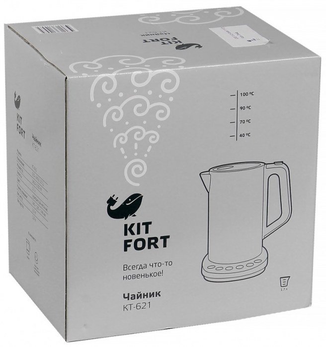 Kitfort КТ-621 нас полностью устроил как по своим техническим характеристикам, так и по общему удобству в эксплуатации. Он исправно кипятил воду и нагревал ее до нужной температуры, а также радовал глаз своим строгим и лаконичным дизайном. Такой чайник, несмотря на относительно невысокую цену, будет адекватно смотреться не только на любой кухне, но также и в обстановке, подразумевающей определенную «солидность» — например, в офисе или в переговорной комнате. Не забудем еще раз похвалить «умный» режим нагрева, который не отключается сразу же при снятии чайника с базы, а дает пользователю минуту на то, чтобы долить горячую воду в кружку.