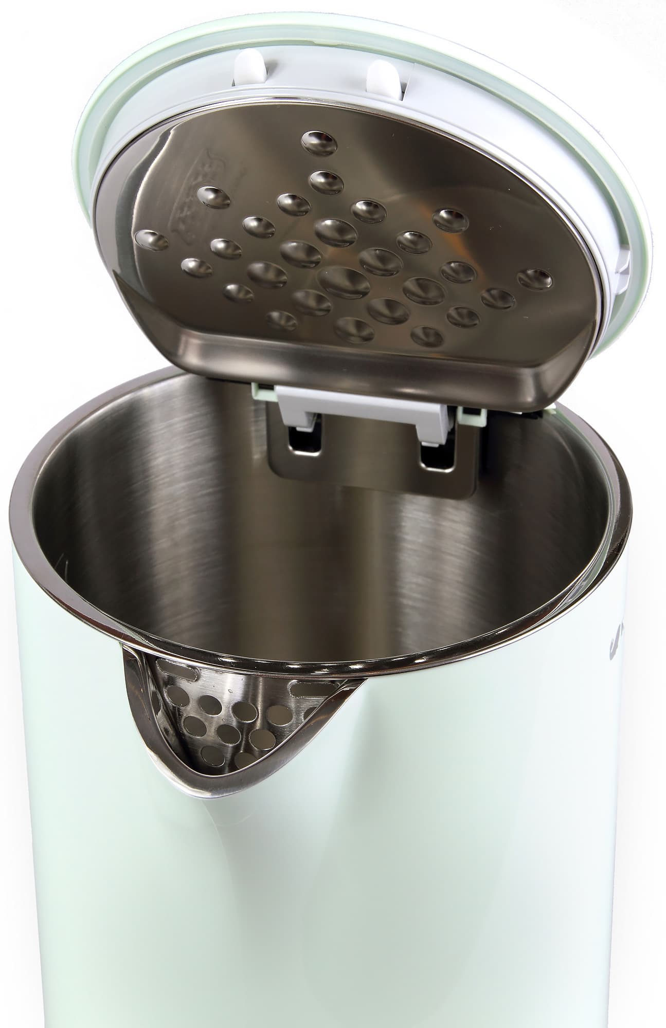Носик оснащен несъемным очень крупноячеистым «фильтром», который является частью колбы. Как мы уже неоднократно писали, это вовсе не фильтр, а приспособление, создающее сопротивление выходящему через носик пару, чтобы давление под крышкой было больше атмосферного и сработала автоматика выключения по закипанию.