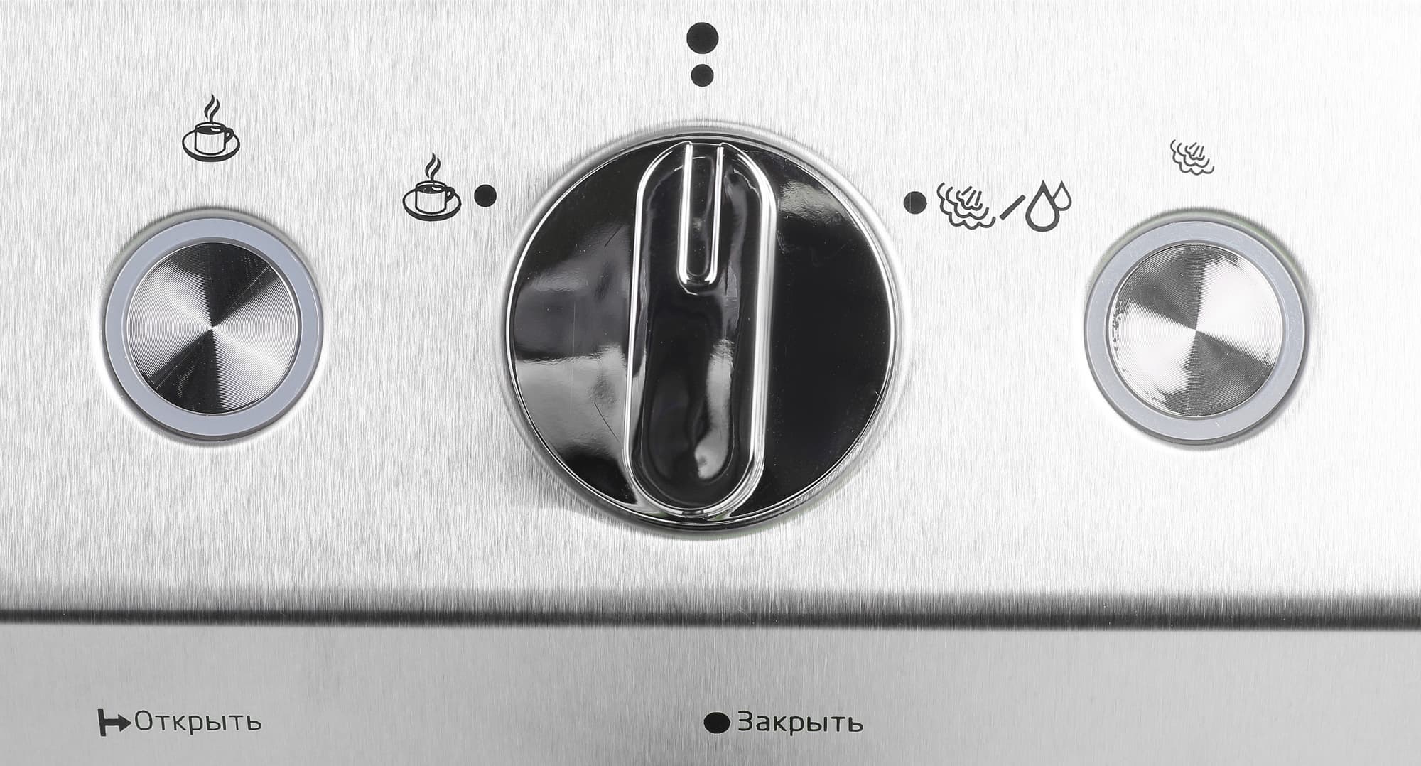 А что будет, если нажать кнопку «пар», а потом повернуть ручку против часовой стрелки? Ничего страшного: просто начнет мигать кнопка «кофе», оповещая вас о том, что для приготовления кофе прибор слишком сильно перегрет, и нужно подождать, пока он остынет.