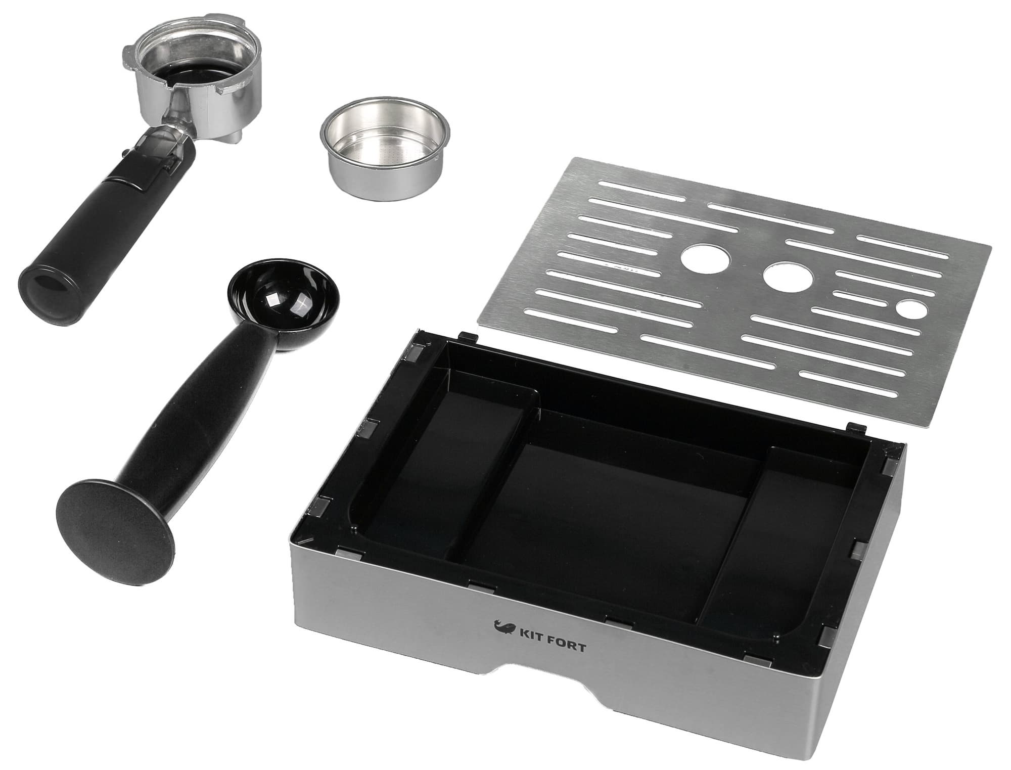 Потенциальный покупатель Kitfort KT-701 просто-таки обязан любить кофе и пить его достаточно часто — потому что в противном случае нахождение на кухне такого гиганта трудно объяснить с точки зрения логики и здравого смысла. Один только бак для воды объемом 1,25 литра сразу настраивает на серьезный лад и регулярное употребление.