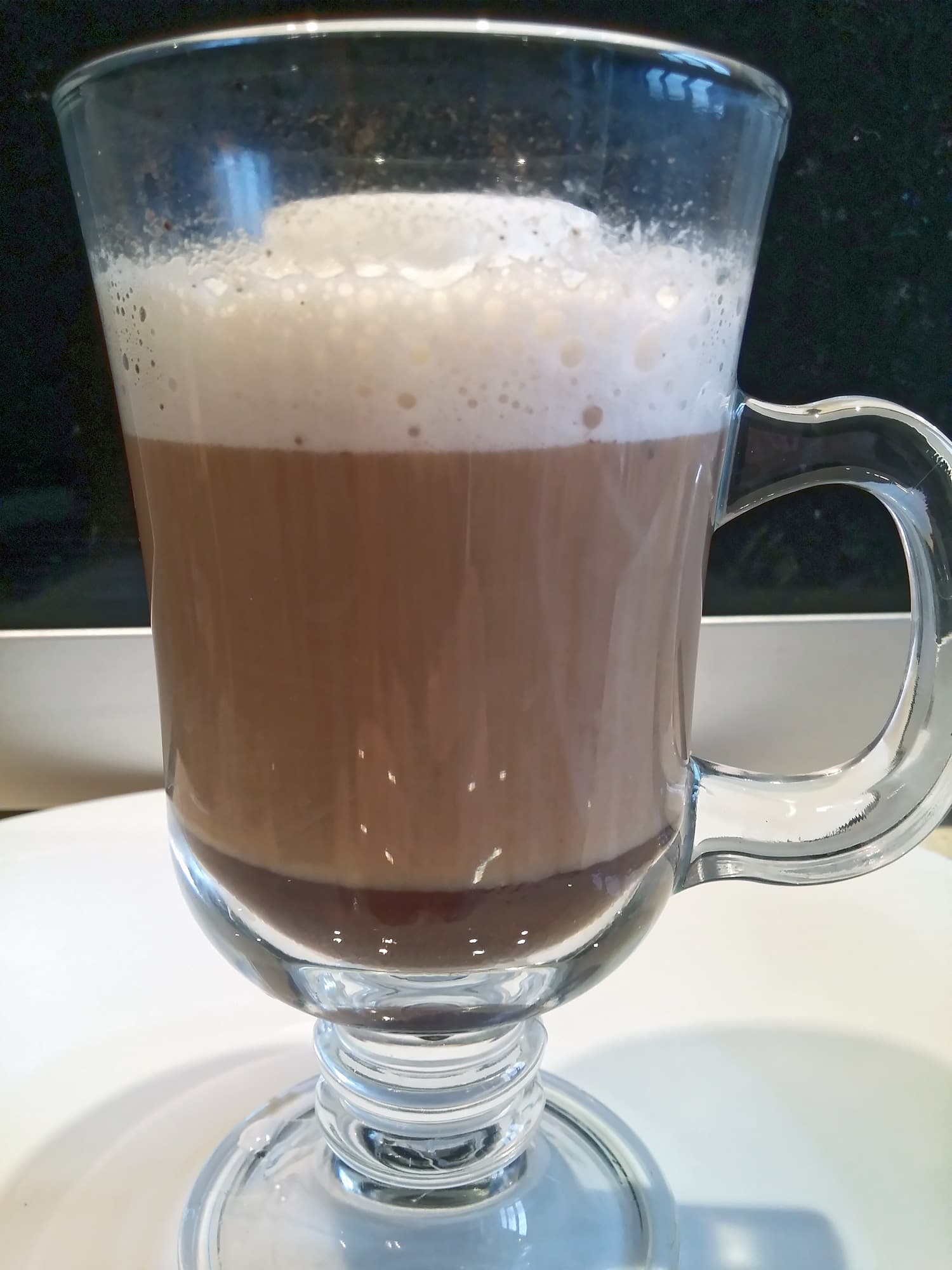 На фото спустя 10 минут отчетливо видны 3 слоя в бокале: кофе, кофе с молоком и пена. Однако пена осела всего наполовину и следующие 10 минут простояла без изменений – вряд ли кому-то нужен более длительный результат.