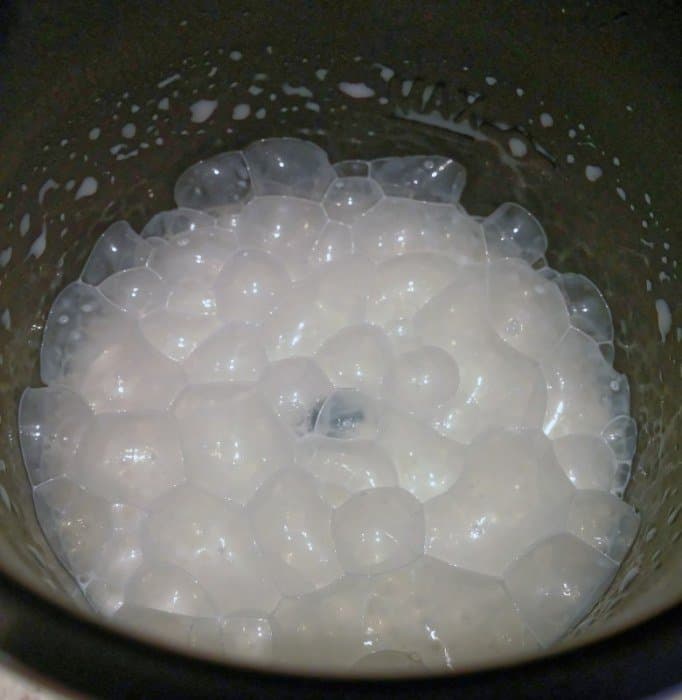 Взбивание с нагревом дало такое же двойное увеличение объема за 2 минуты, пена температурой 52 °C занимала примерно 40% объема, но была более пластичной и устойчивой к переливанию.