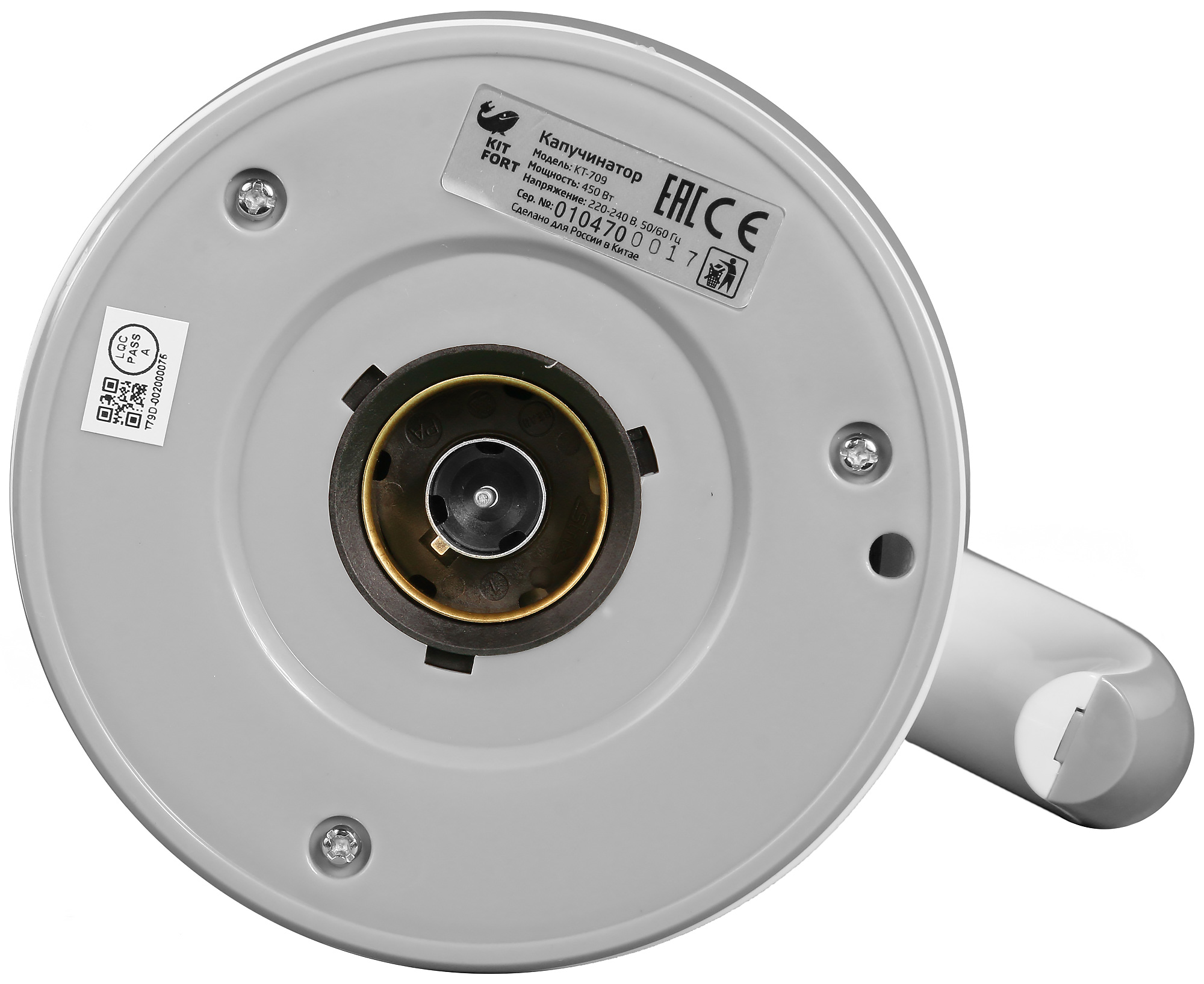 Прозрачная пластиковая крышка с уплотняющей резинкой устанавливается на корпус, чтобы предотвратить разбрызгивание молока и сохранить его температуру при нагреве.