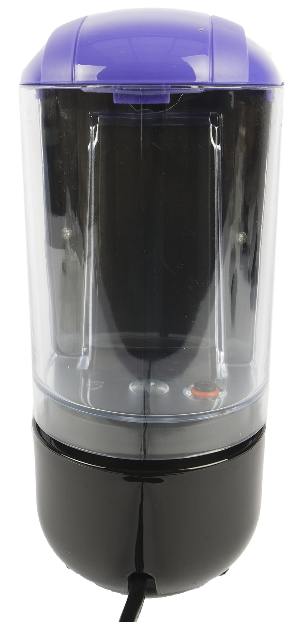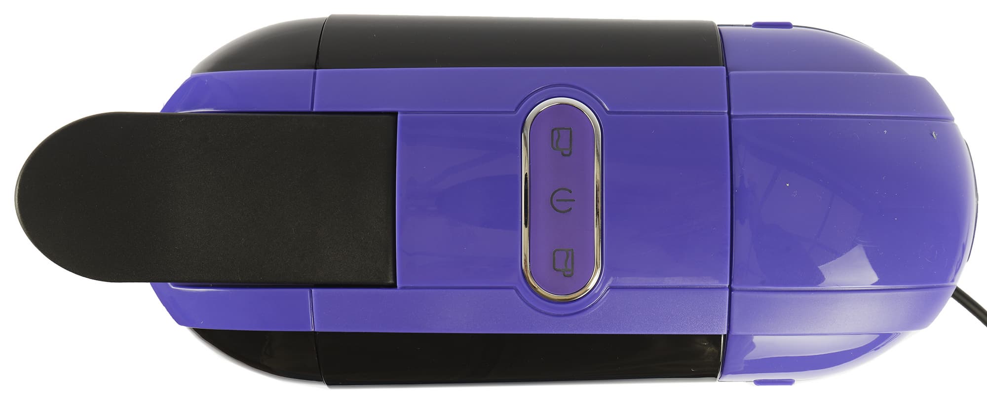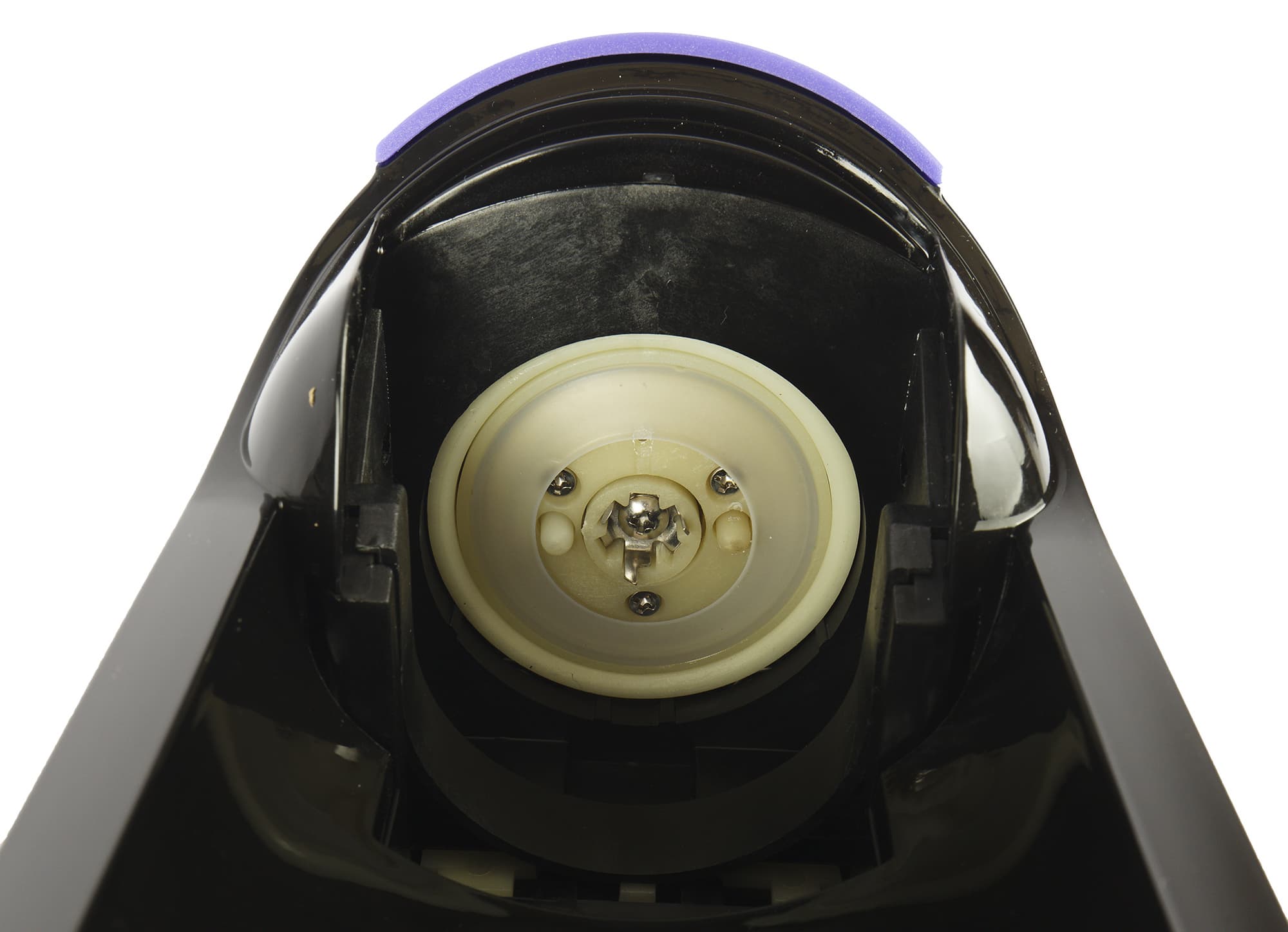Визуально кофеварка производит более чем приятное впечатление: нам понравился и внешний вид, и качество сборки, и общий дизайн устройства. Корпус прибора сделан из черного глянцевого и фиолетового пластика. На вид перед нами, конечно, не прибор премиум-класса, но вполне достойный гаджет, который будет удачно смотреться как дома, так и в офисе или переговорной комнате. Сразу отметим единственную визуальную претензию — цвет пластика верхней панели и крышки бака для воды слегка различаются. Это, конечно, мелочь, однако внутренний перфекционист не может не отметить такую нестыковку.