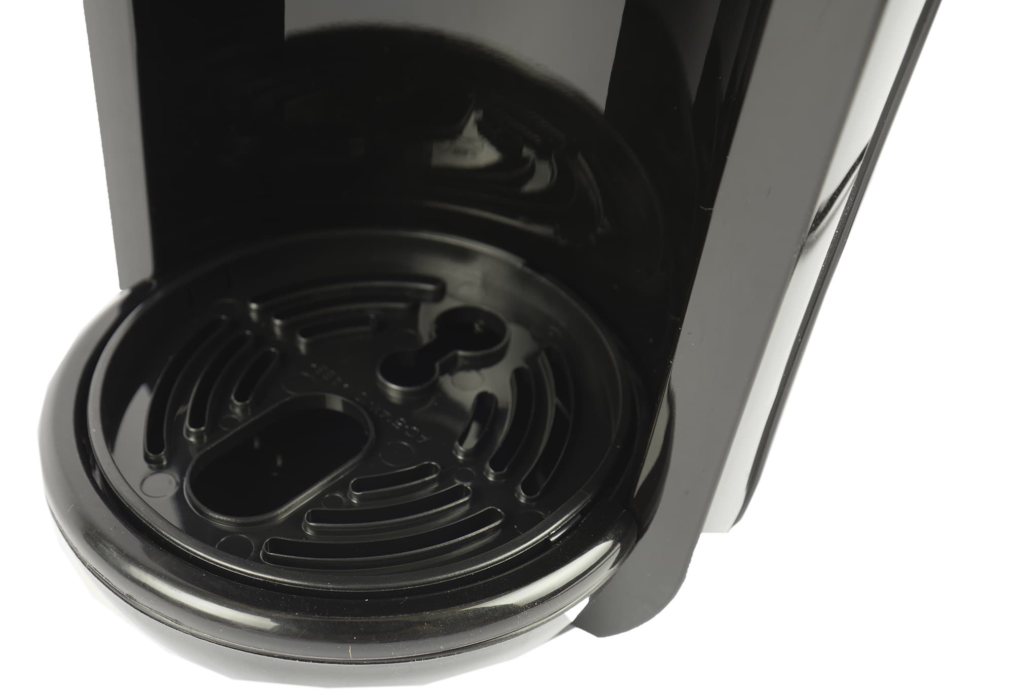 Спереди снизу находится место для установки чашек — съемный разборный пластиковый поддон для сбора капель. Индикатора заполнения (переполнения) у него не предусмотрено, за этим придется следить самостоятельно. Максимальная высота чашек невелика — всего 7,5 см.