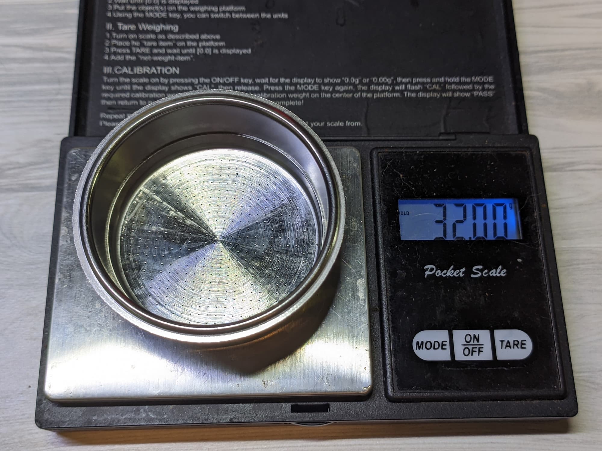 ...и вес стандартной закладки кофе стандартного для помола для эспрессо.