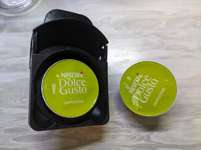 Для приготовления капучино мы взяли две капсулы Dolce Gusto — одну с кофе, вторую с сухим молоком.