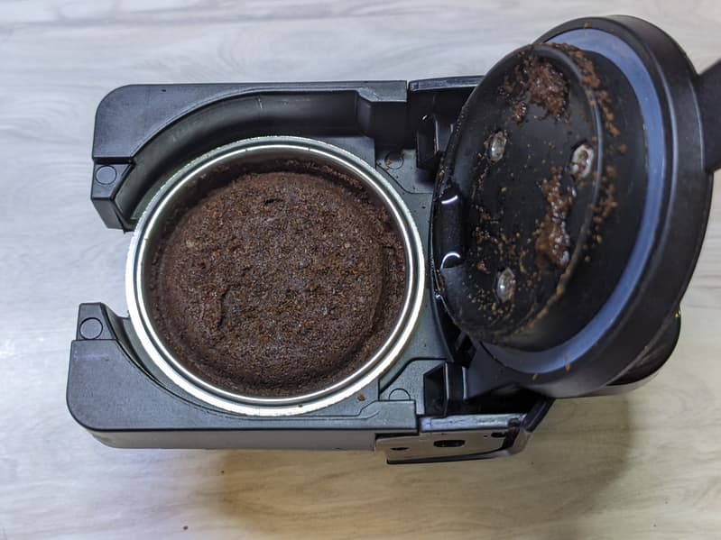 Наконец, мы изучили кофейную таблетку, оставшуюся в фильтре. Отработанный кофе содержал большое количество воды и выглядел рыхло.