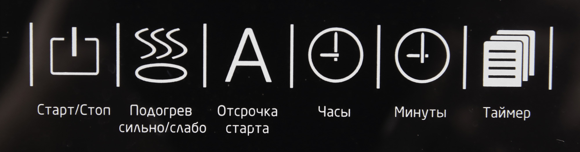 - Подогрев сильно/слабо — переключение между уровнями подогрева. Если над кнопкой горит индикатор — включен сильный уровень подогрева;