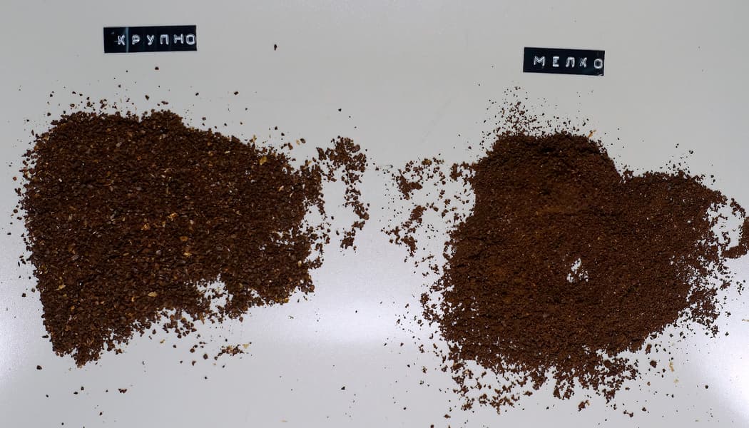 Еще один изменяемый параметр, которым может управлять пользователь — это степень помола зерна. Практически во всех наших тестах участвовал самый мелкий помол, как наиболее приближенный по размеру фракции к магазинному. У мельницы несколько степеней помола, но отличия соседних друг от друга ничтожны, поэтому для демонстрации разницы мы сравнили максимальную и минимальную степень помола.
