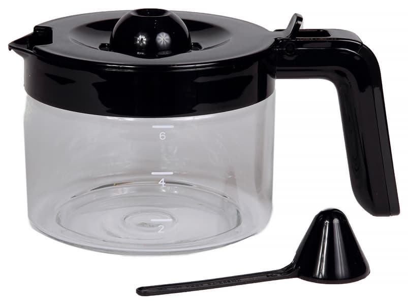 Кувшин для кофе круглый в поперечном сечении, сама емкость сделана из стекла, крышка и ручка — из черного пластика. На кувшине изображена та же шкала с количеством чашек, что и на окне резервуара. В куполообразной части крышки, стыкующейся с противокапельным клапаном, есть основное отверстие для приема кофе и две вспомогательных каплеулавливающих прорези.