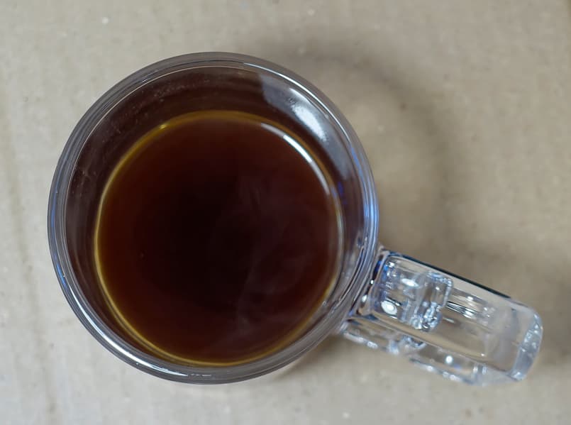 Для эксперимента мы приготовили кофе из крупномолотого зерна. Получившийся напиток показался нам довольно бледным на вид и невыразительным на вкус. Впрочем, следует помнить, что обычно слабозаваренный кофе люди выбирают не из вкусовых предпочтений, а по физиологическим соображениям.